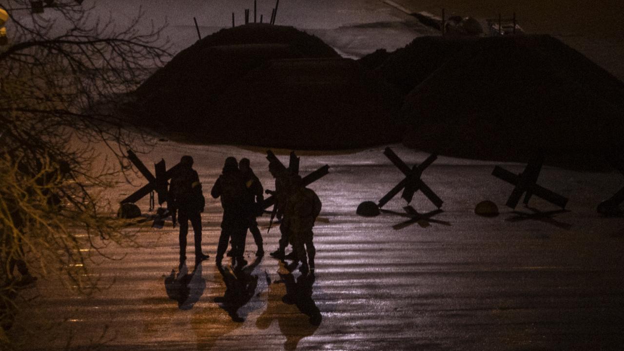 Rusya`nın Ukrayna`ya saldırı başlatmasının 2. gününde Rus birlikleri başkent Kiev`e ilerlemiş, Ukrayna askerleri de Kiev merkezinde herhangi bir girişe karşı böyle konuşlanmıştı.