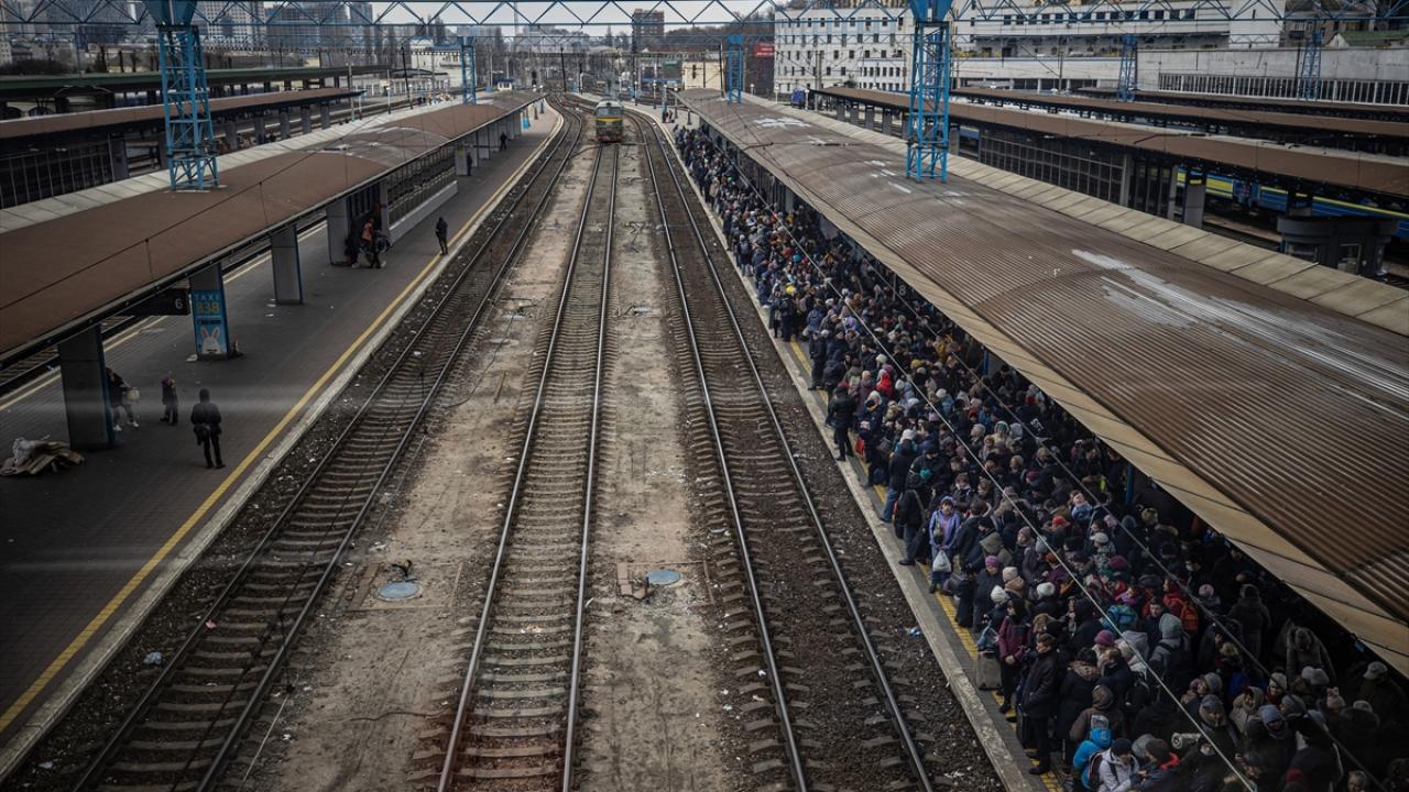 7 Mart 2022`de Ukrayna`nın Kiev, Mariupol, Harkiv ve Sumi şehirlerinden sivillerin tahliyesi için Rusya`nın geçici ateşkes ilan ettiğini duyurmasının ardından Kiev tren istasyonunda yoğunluk yaşanmıştı. (Arşiv)