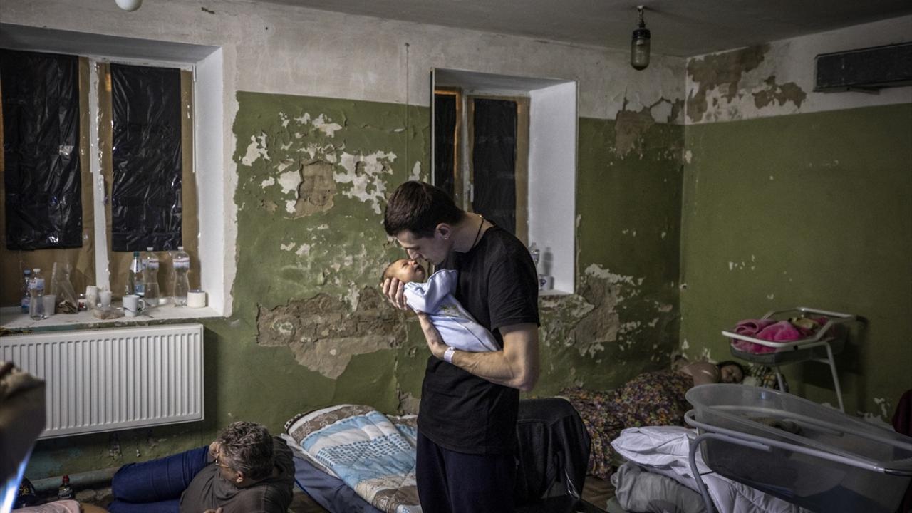2 Mart 2022`de Rusya’nın saldırısı altındaki Ukrayna’nın başkenti Kiev’deki bir doğum hastanesindeki hastalar ve yeni doğan bebekler, bodrum katındaki sığınağa götürülmüştü. (Arşiv)