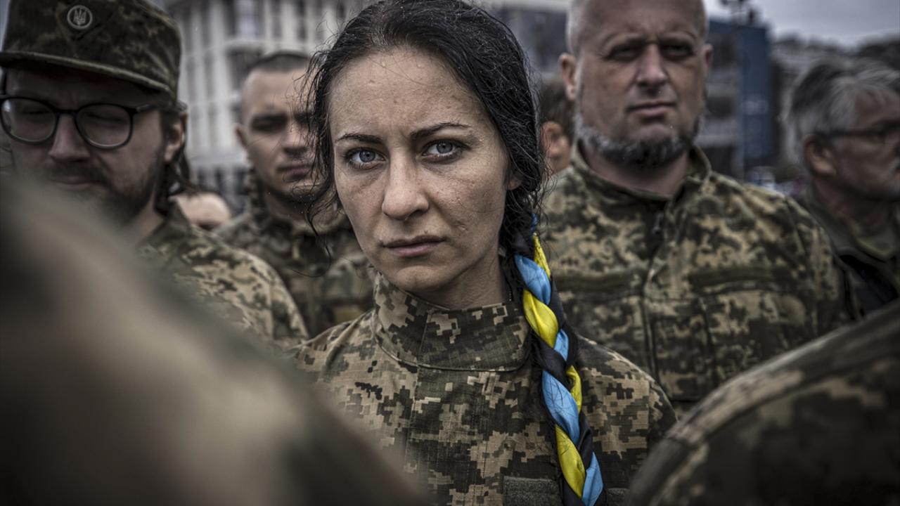 22 Haziran 2022`de Ukrayna ordusuna ait Karpat-Sich Taburu Komutanı olan ve İzyum bölgesindeki çatışmalarda hayatını kaybeden Oleg Kutsin için başkent Kiev`deki Bağımsızlık Meydanı`nda tören düzenlenmişti. (Arşiv)