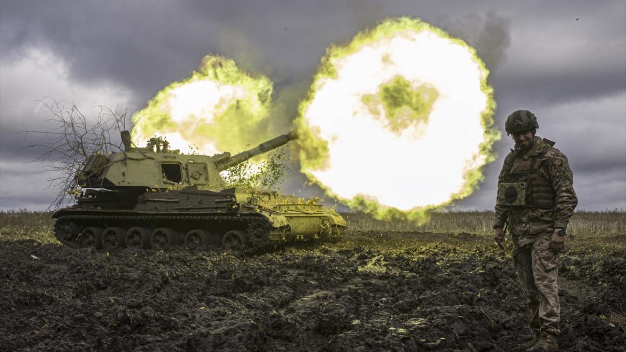 28 Ekim 2022`de Rusya`ya karşı savaşın devam ettiği Ukrayna`nın Donetsk bölgesinde, en sıcak çatışmaların sürdüğü Bahmut kentine yakın konuşlanan Ukrayna topçu bataryalarının faaliyetleri, AA ekibince görüntülenmişti. Ukrayna ordusunun, Prens Volodymyr Monomakh`ın adını taşıyan 53. Mekanize Tugayı`na bağlı topçu bataryası, bölgede konuşlanan diğer topçu birlikleri gibi Rus güçlerine yoğun atış yapmıştı. (Arşiv)