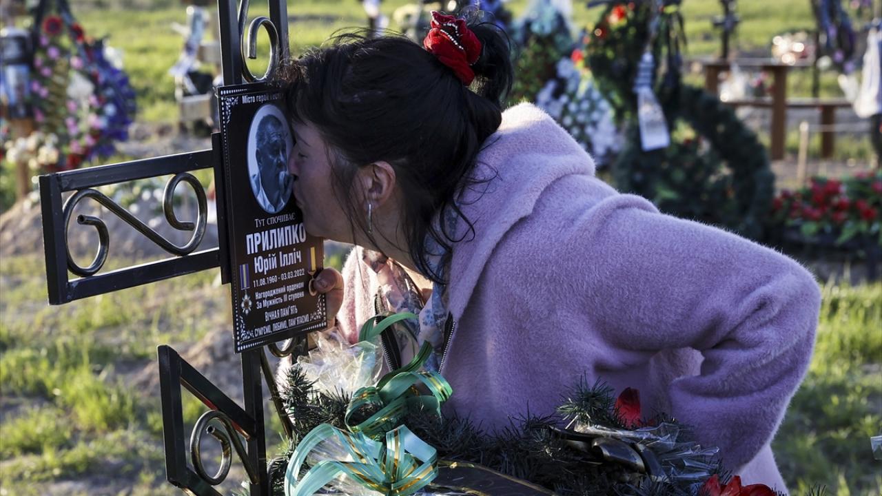 18 Nisan 2022`de savaşta hayatını kaybeden Ukraynalı sivil ve askerler Buça Mezarlığı`na defnedilmişti. (Arşiv)