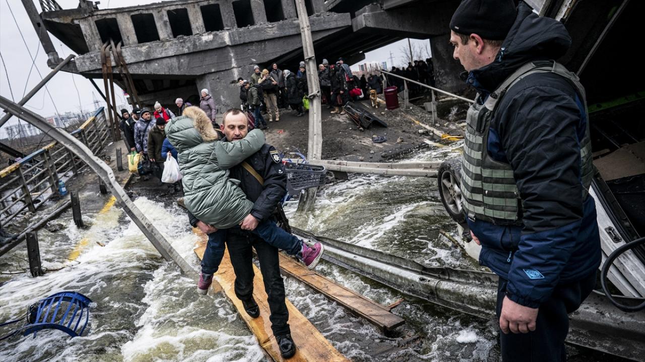 6 Mart 2022`de Rusya, tahliyeler sırasında da Ukrayna’ya yönelik saldırısına devam etmişti. İrpin şehrinde köprü etrafında tahliye için toplanan sivillerin birkaç metre uzağında patlama meydana gelmişti. (Arşiv)