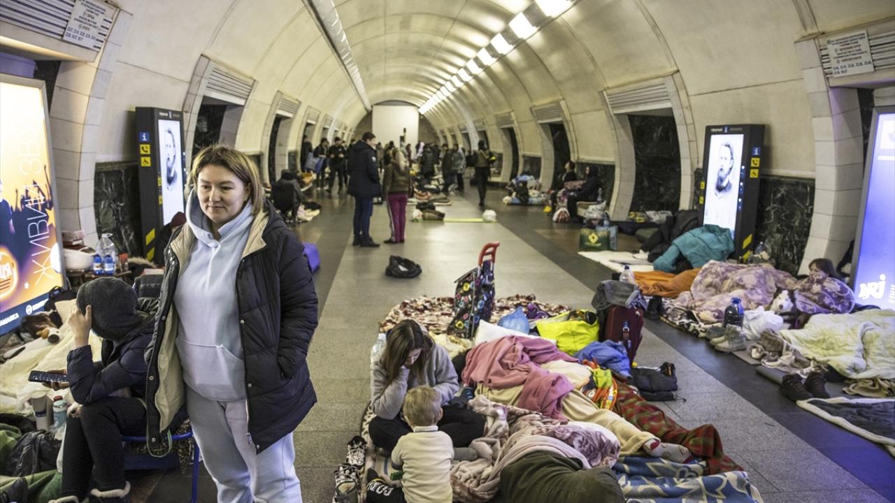 2 Mart 2022`de Rusya`nın Ukrayna`ya yönelik askeri müdahalesi sırasında başkent Kiev`de çok sayıda sivil, Dorogojiçi metro istasyonunu sığınak olarak kullanmıştı. (Arşiv)