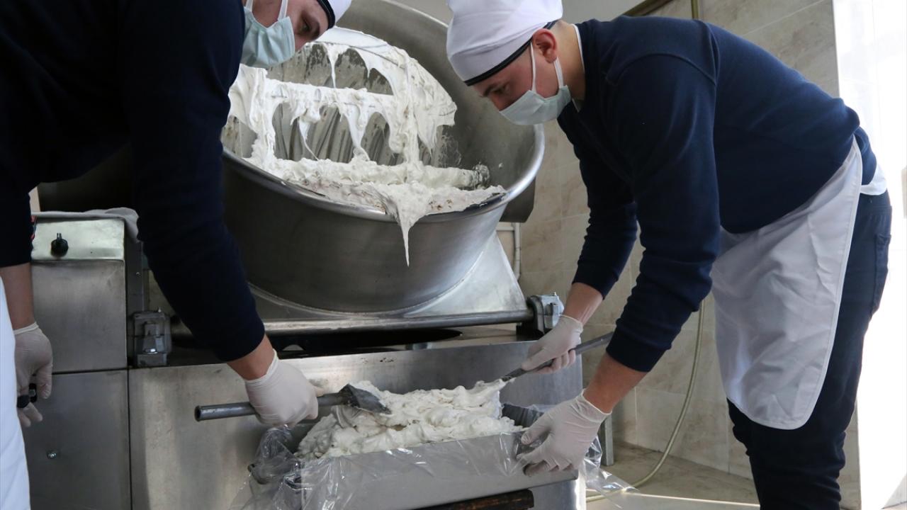 Sanayi sitesindeki imalathanelerinde kışın 8, yazın 15 kişiye iş imkanı sağlayan ikizler, dedelerinin şeker, ceviz ve çöven bitkisi suyu kullanarak ürettiği helvaları sipariş üzerine Türkiye`nin dört bir yanına ulaştırıyor.