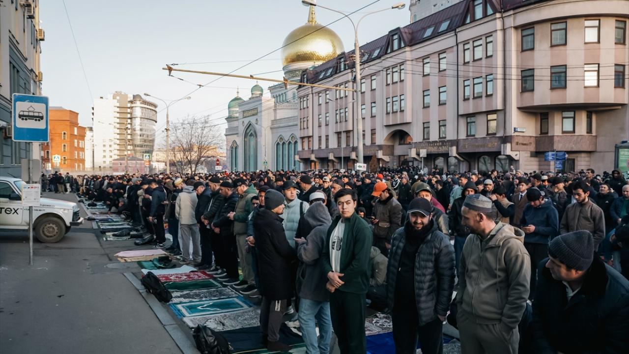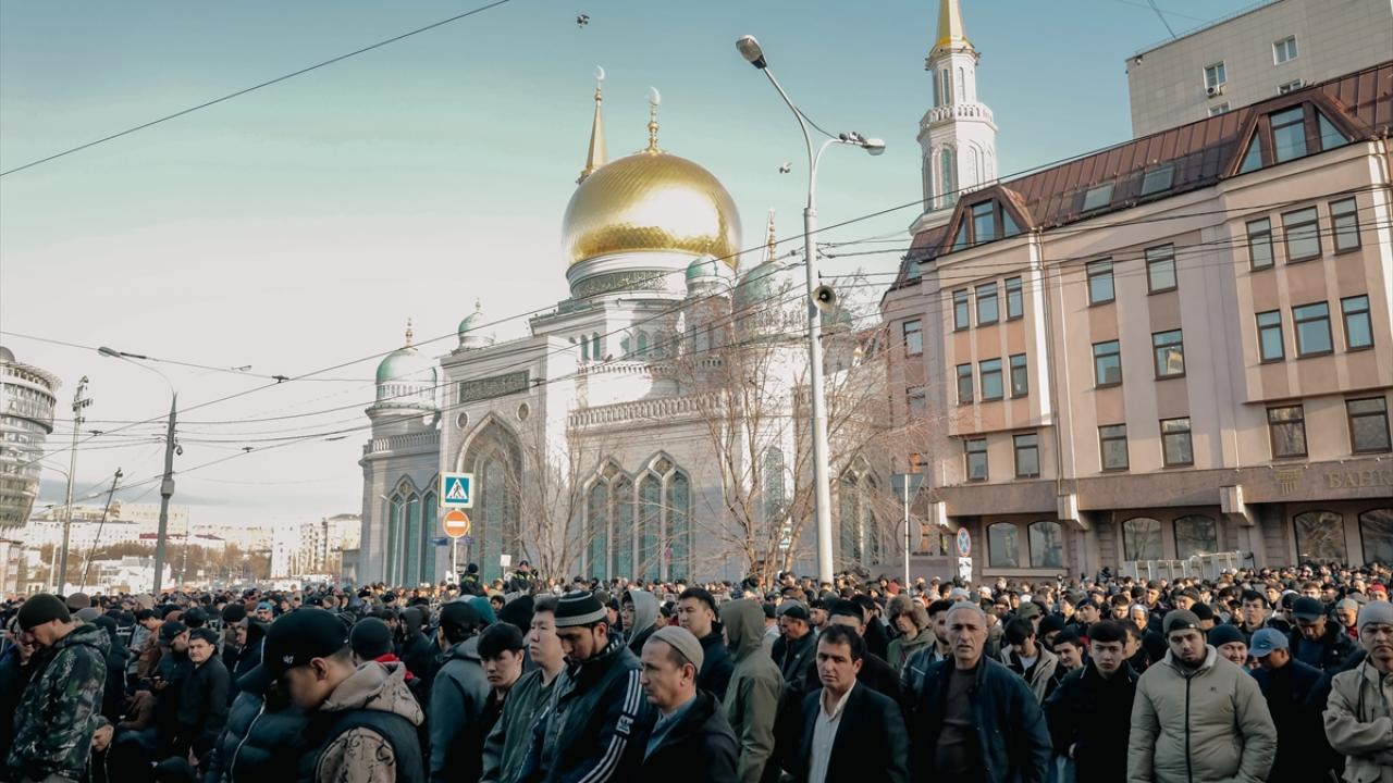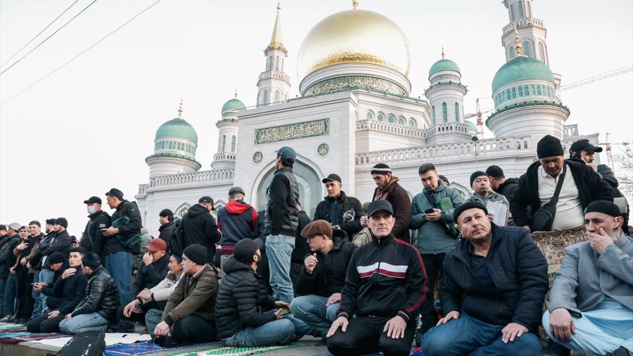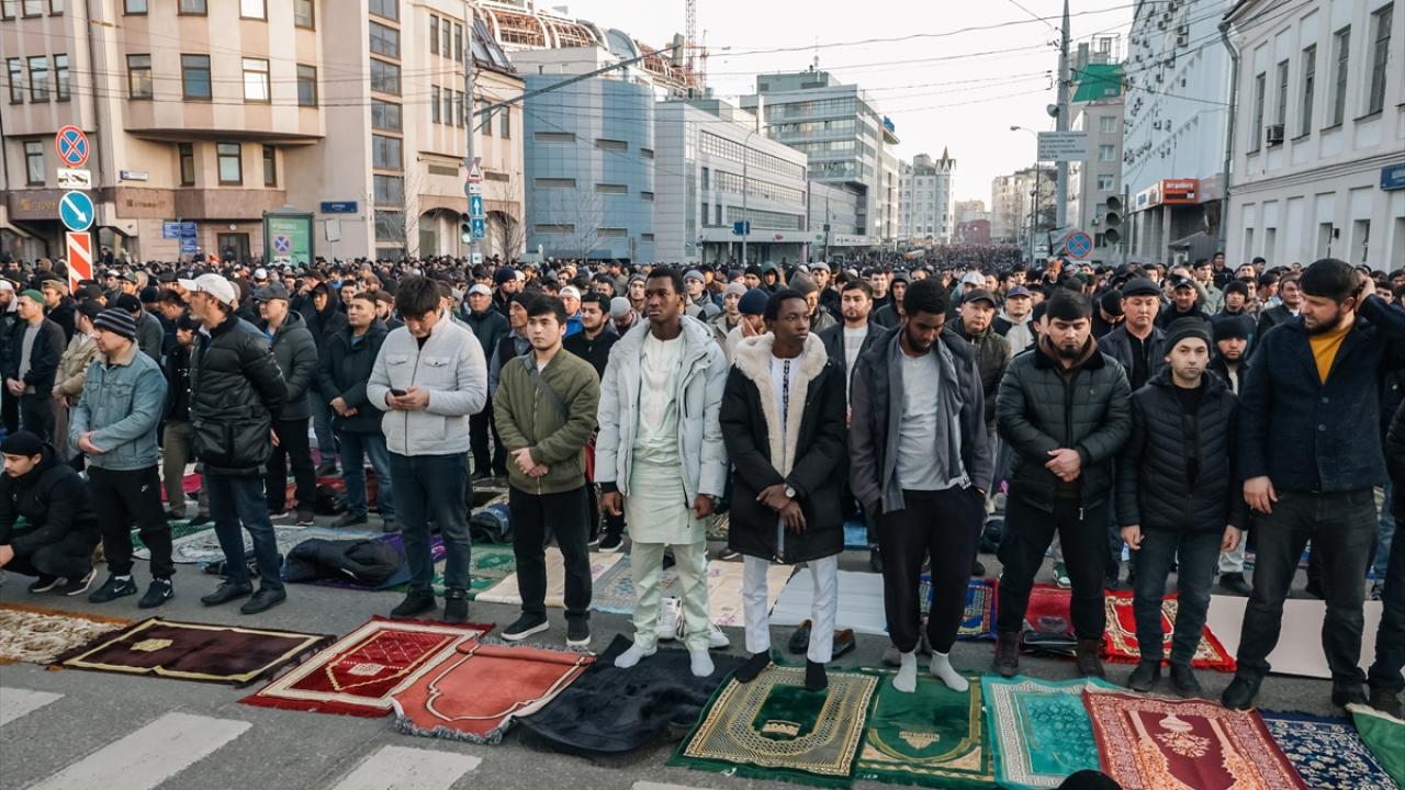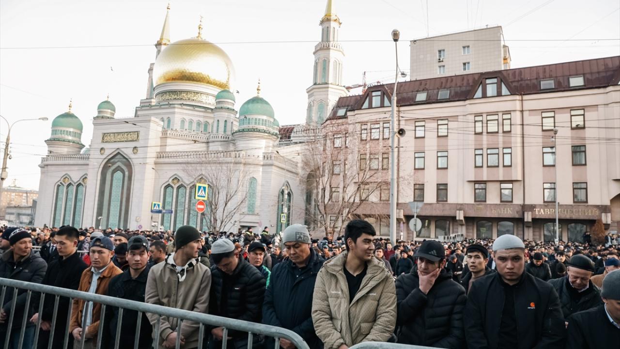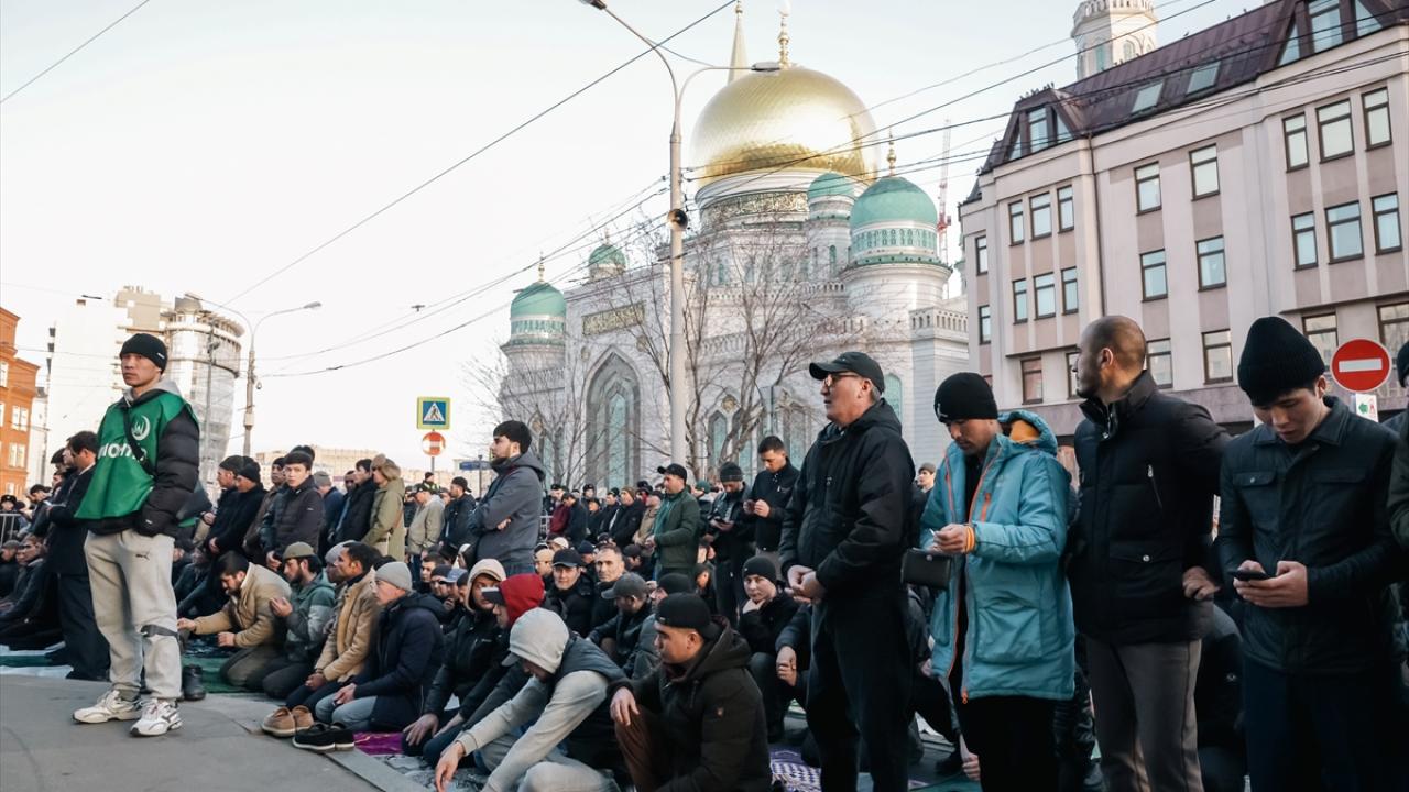 Rusya'nın başkenti Moskova'da Müslümanlar, Ramazan Bayramı namazında camilere akın etti. Camilere sığmayan binlerce kişilik cemaat caddelere, sokak aralarına ve parklara taştı.