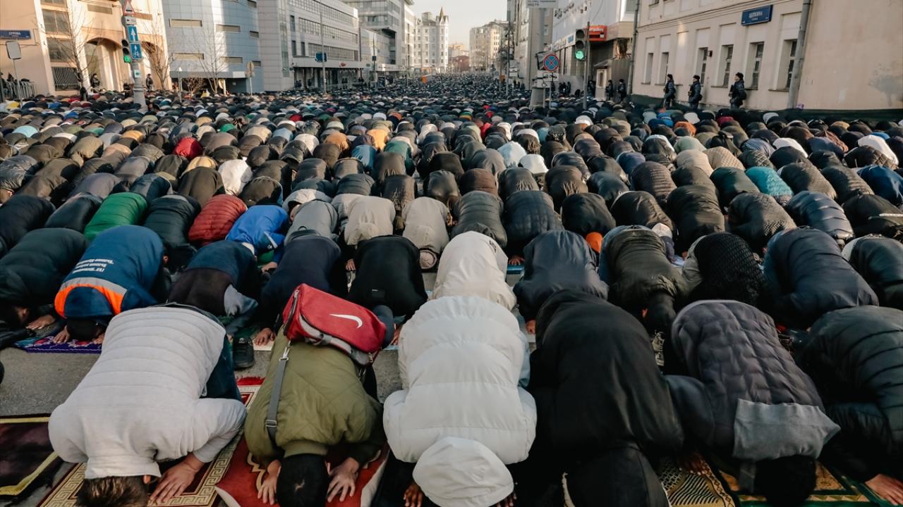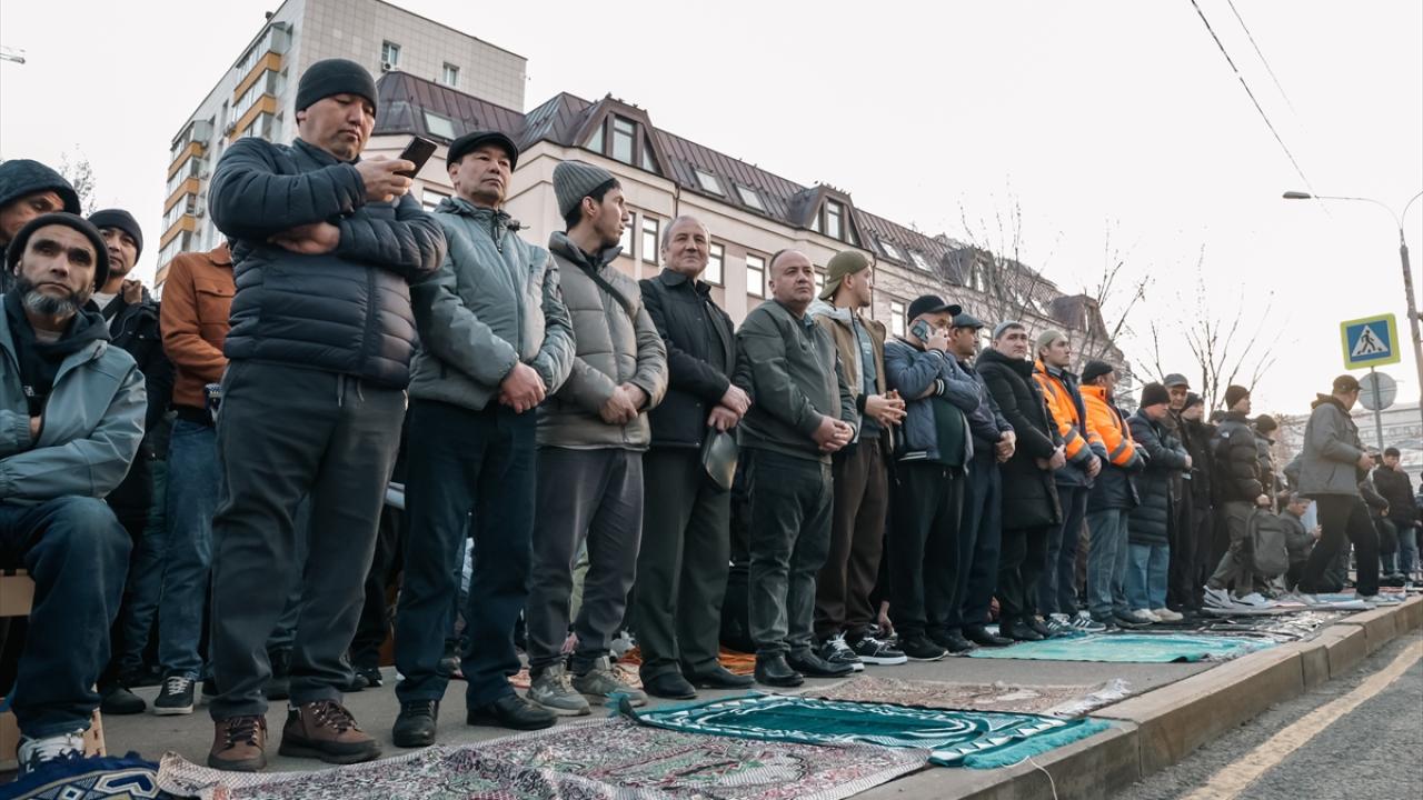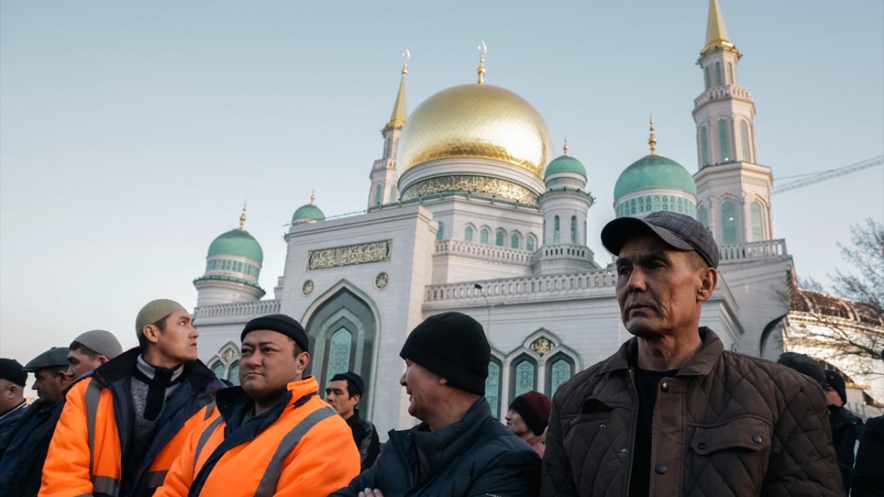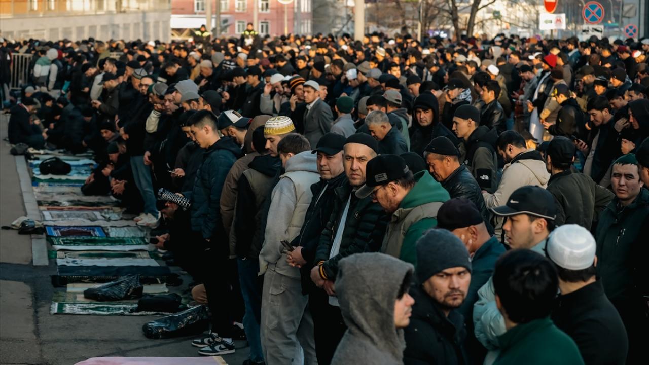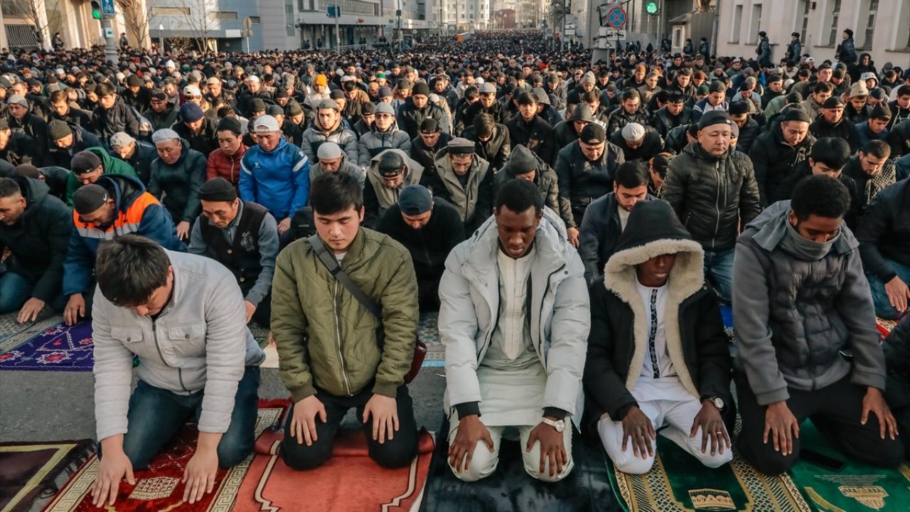 Rusya'nın başkenti Moskova'da Müslümanlar, Ramazan Bayramı namazında camilere akın etti. Camilere sığmayan binlerce kişilik cemaat caddelere, sokak aralarına ve parklara taştı.