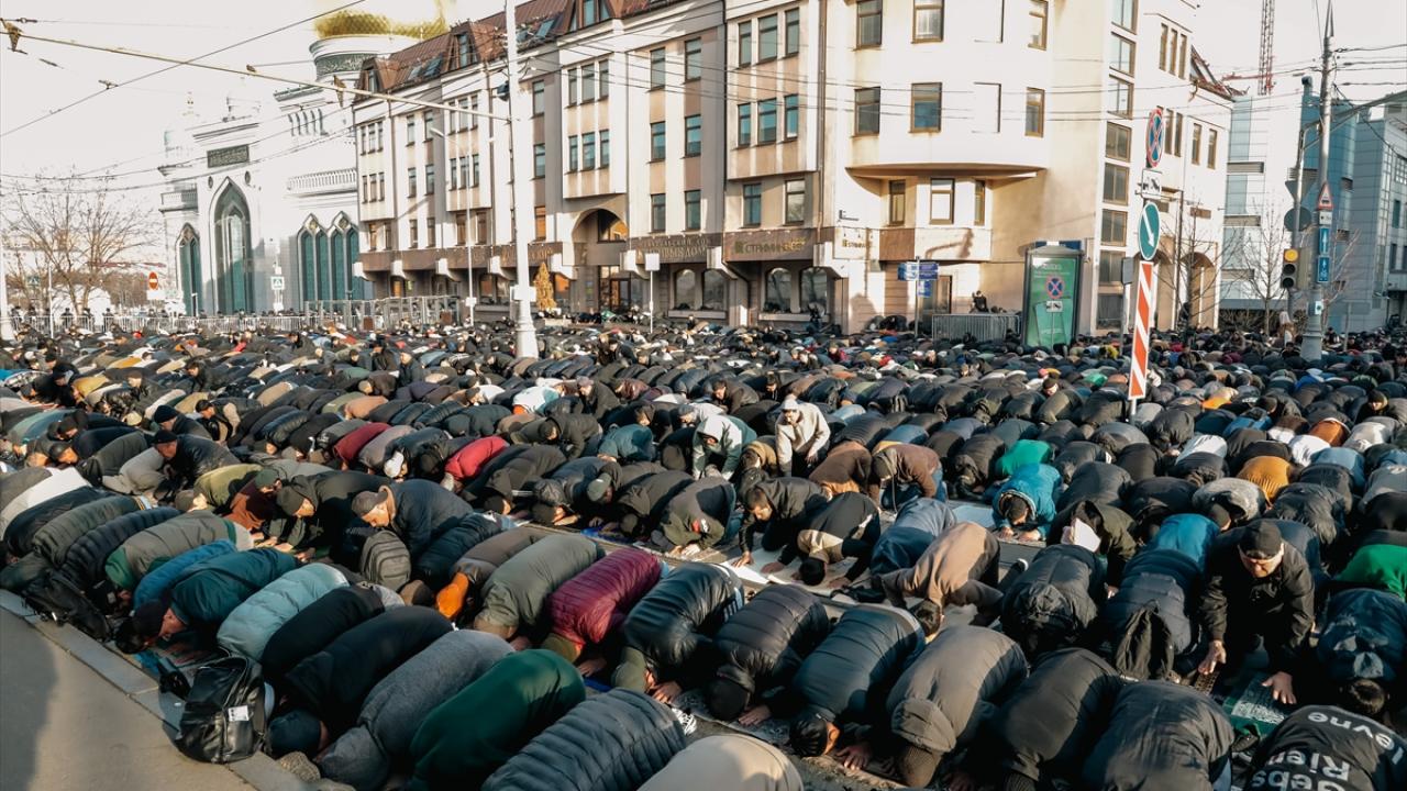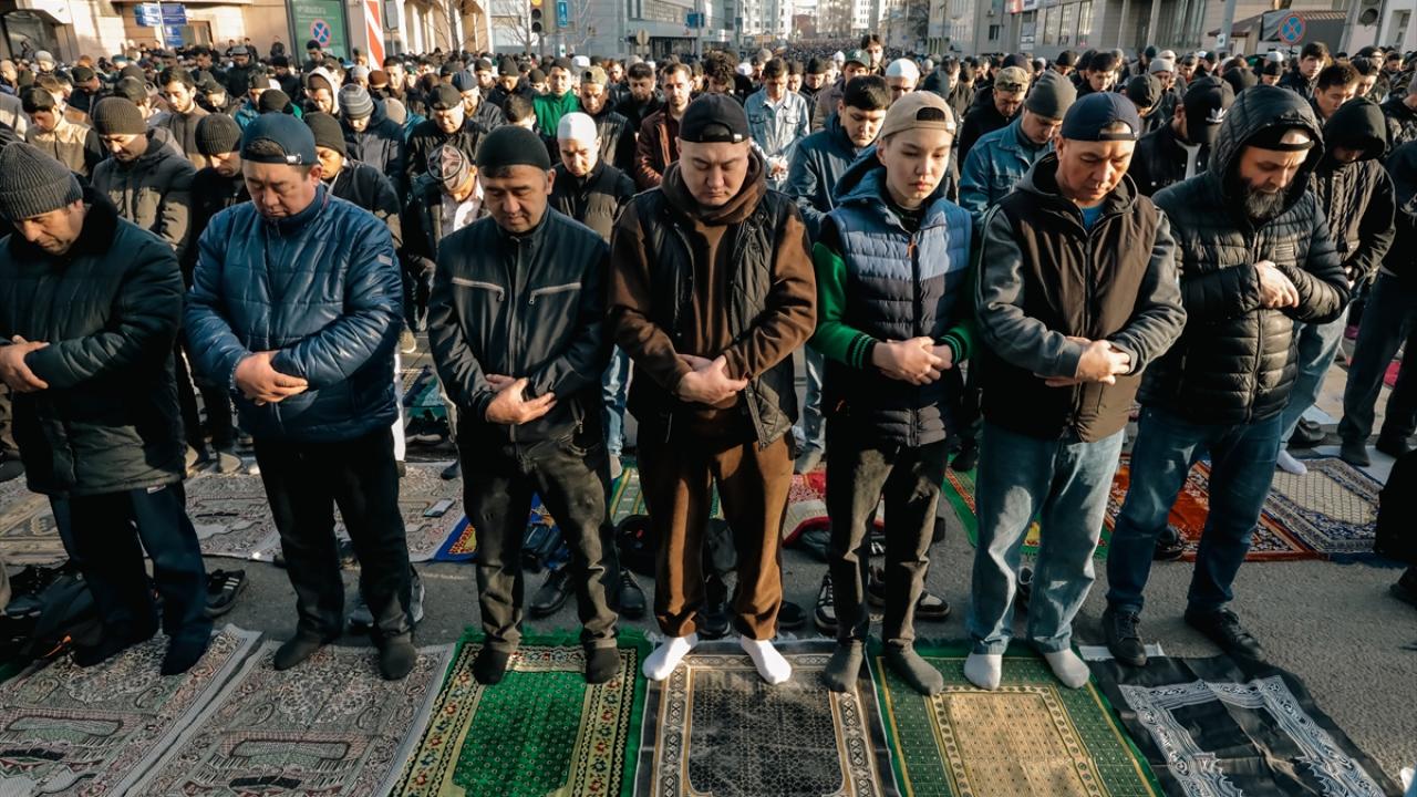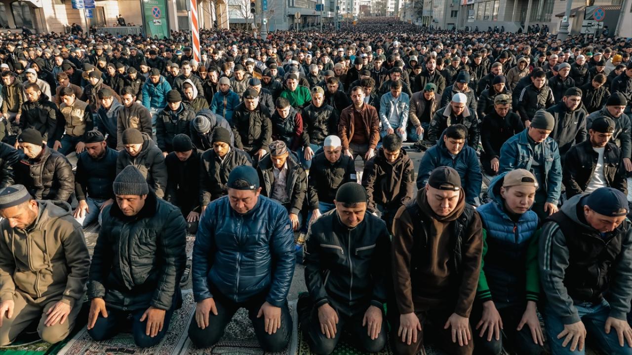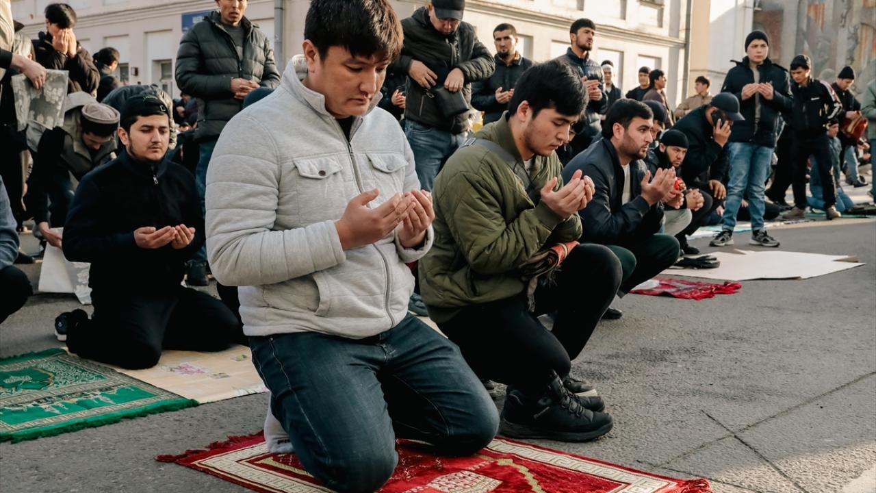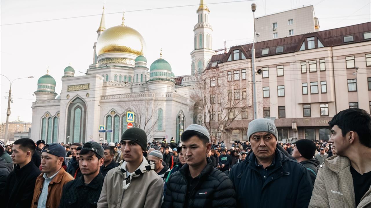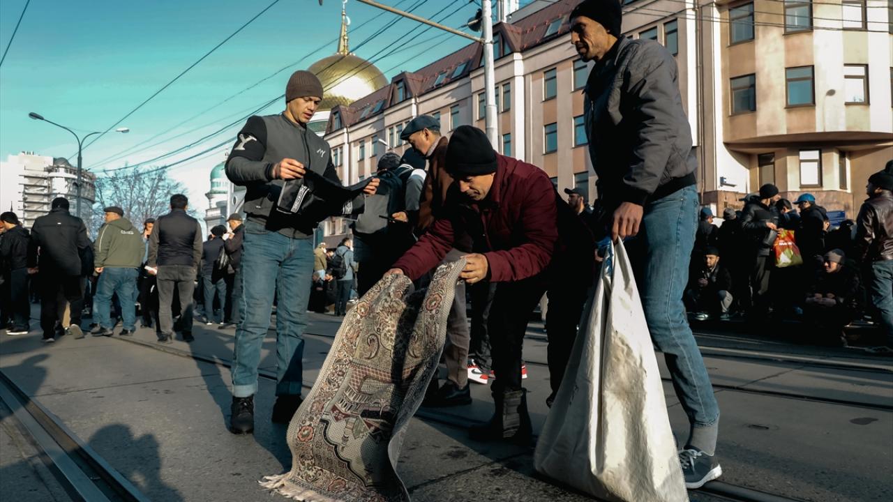 Rusya'nın başkenti Moskova'da Müslümanlar, Ramazan Bayramı namazında camilere akın etti. Camilere sığmayan binlerce kişilik cemaat caddelere, sokak aralarına ve parklara taştı.