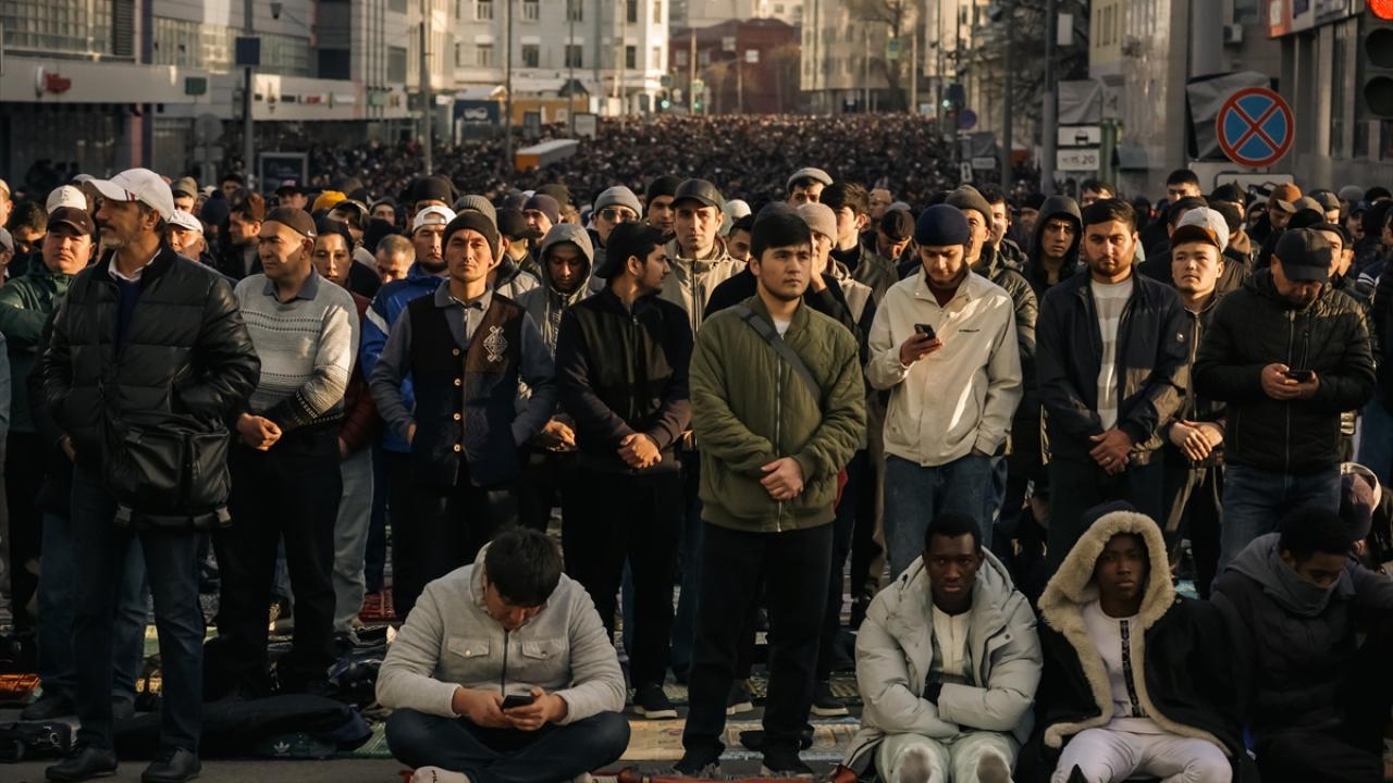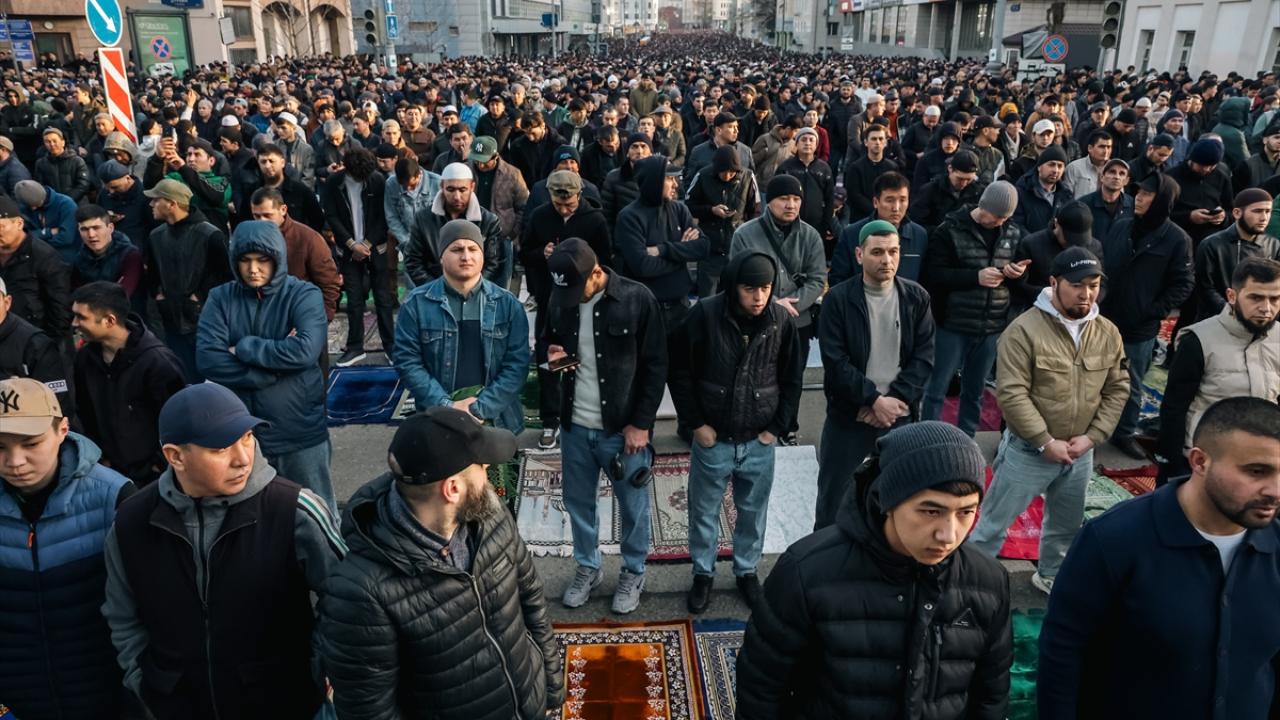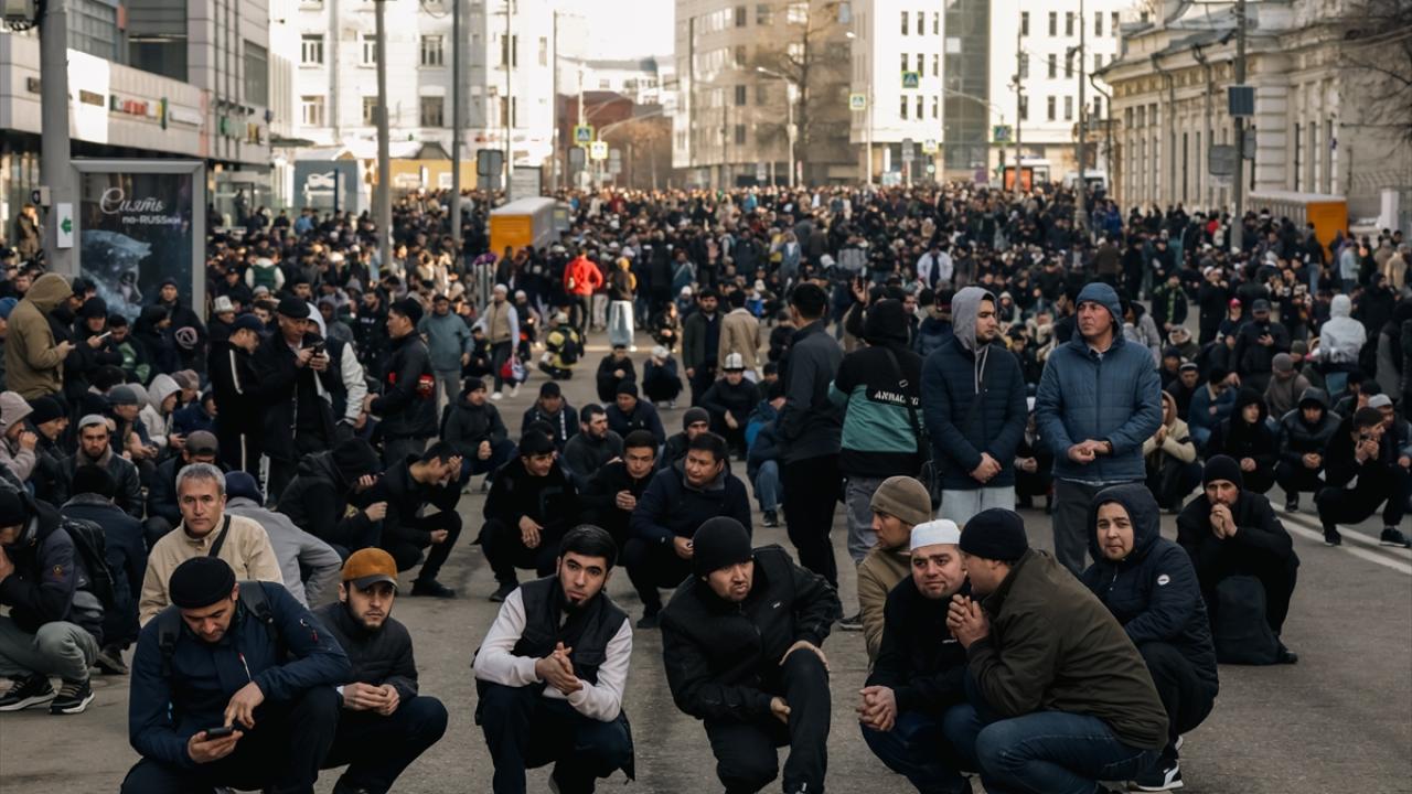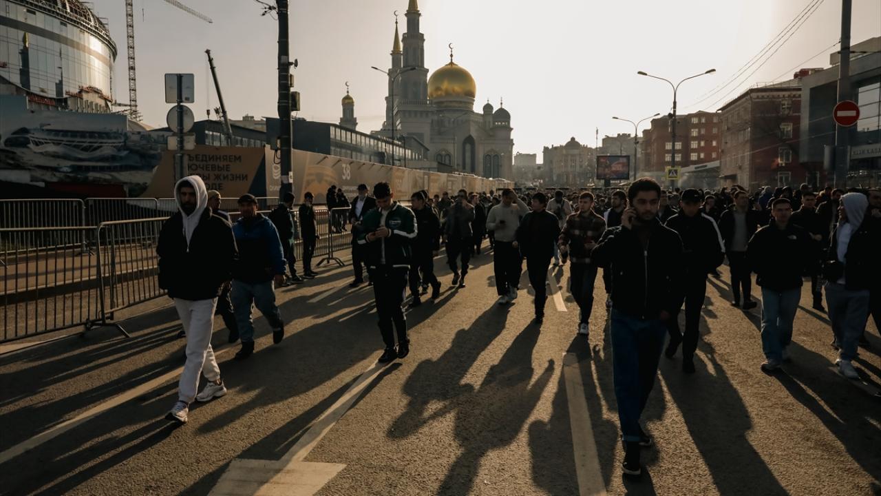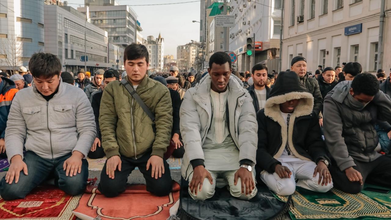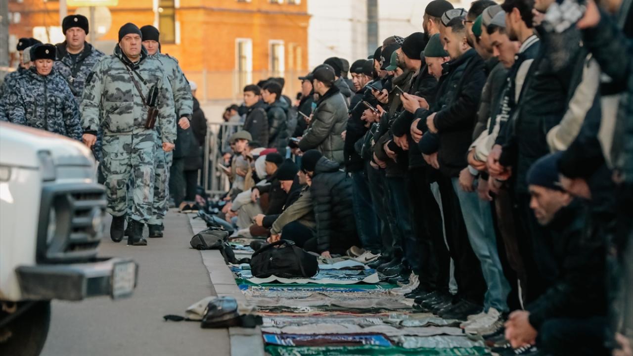 Rusya'nın başkenti Moskova'da Müslümanlar, Ramazan Bayramı namazında camilere akın etti. Camilere sığmayan binlerce kişilik cemaat caddelere, sokak aralarına ve parklara taştı.