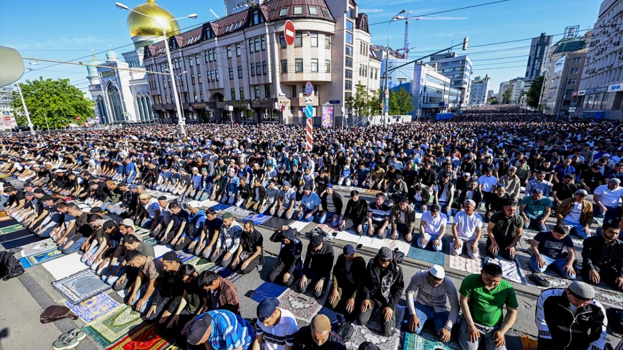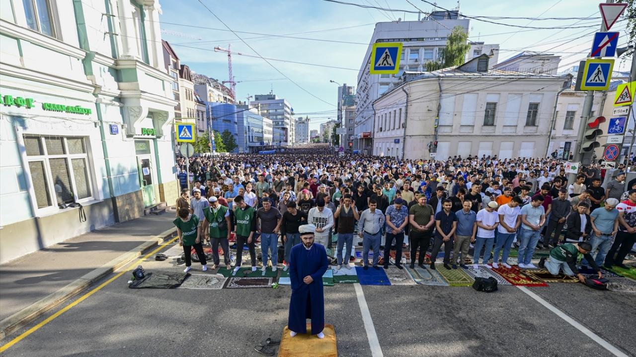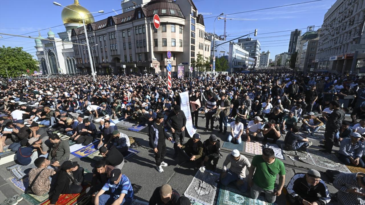 Moskova'daki Müslümanlar, Kurban Bayramı namazını eda etmek için başta Moskova Merkez Camii olmak üzere Anıt Camii, Tarihi Cami ve namaz için şehrin farklı yerlerinde ayrılan özel alanlara akın etti.