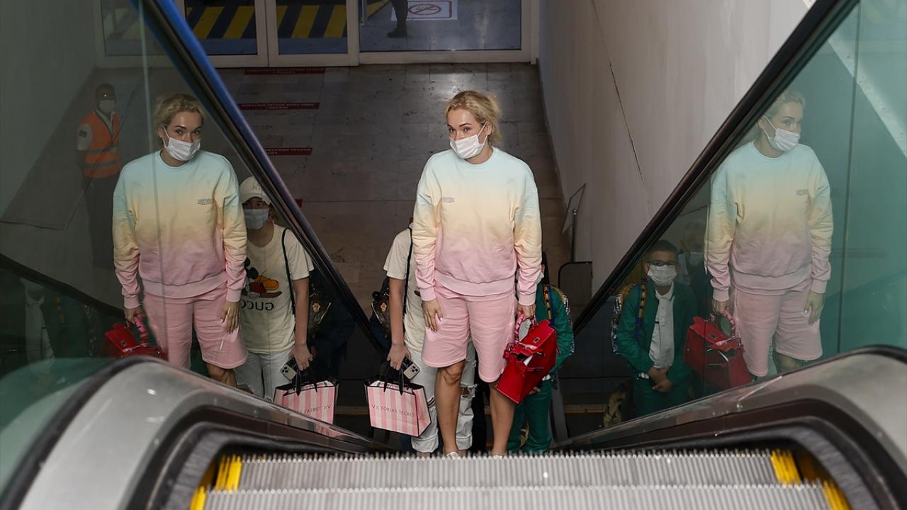 Uçaktan inen turist kafilesi, termal kameralardan geçip havalimanına girdi. Pasaport işlemlerinin ardından salgın tedbirleri kapsamında valizlerini alan turistler, servislerle konaklayacakları otellere hareket etti.