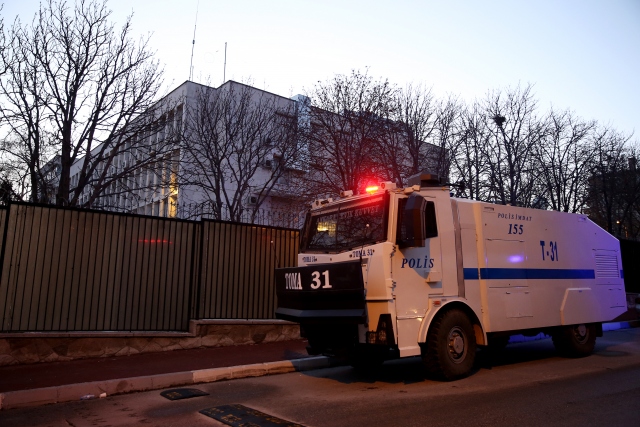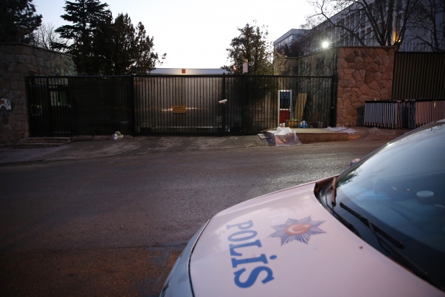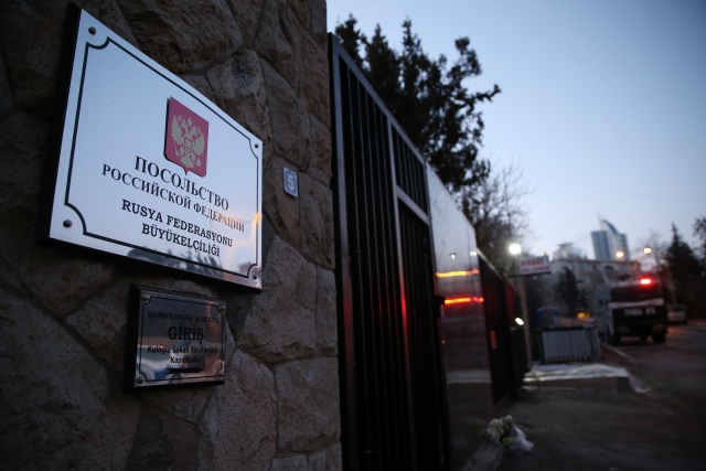 Rusya`nın Ankara Büyükelçisi Andrey Karlov`un katıldığı bir fotoğraf sergisi açılışında silahlı saldırıda öldürülmesinin ardından Rusya`nın Ankara Büyükelçiliği önünde güvenlik önlemleri alındı.