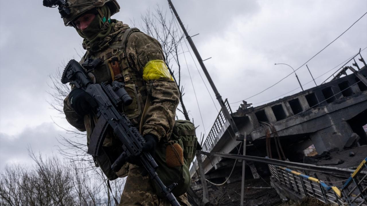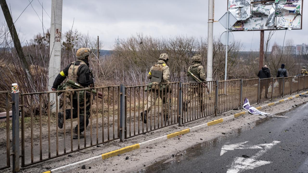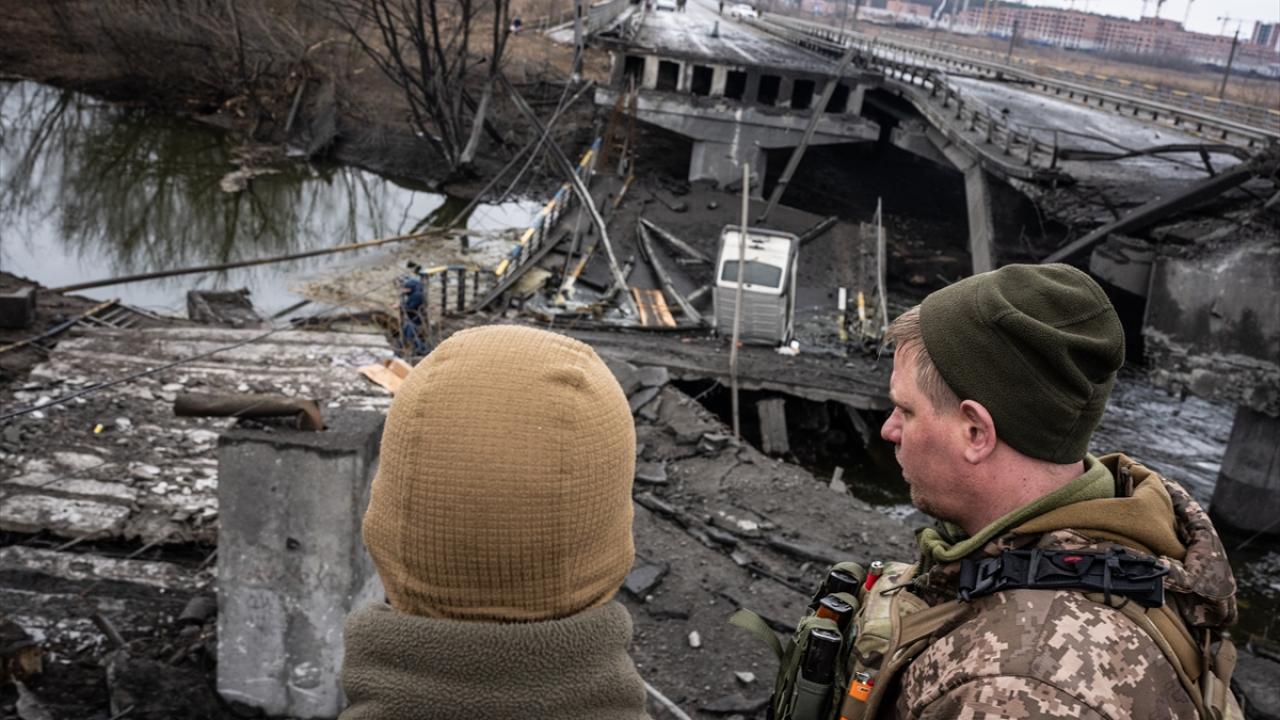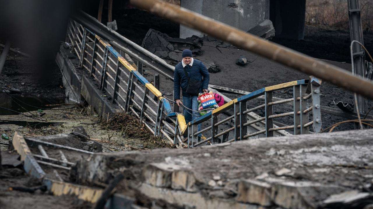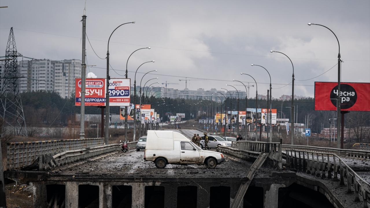 Rusya'nın saldırısı altındaki Ukrayna'nın Irpin şehrinde, bir Rus füzesi tarafından vurulan köprü görüntülendi.