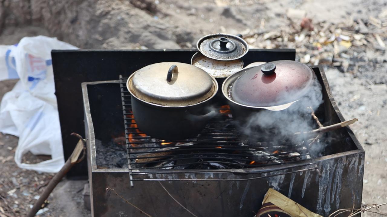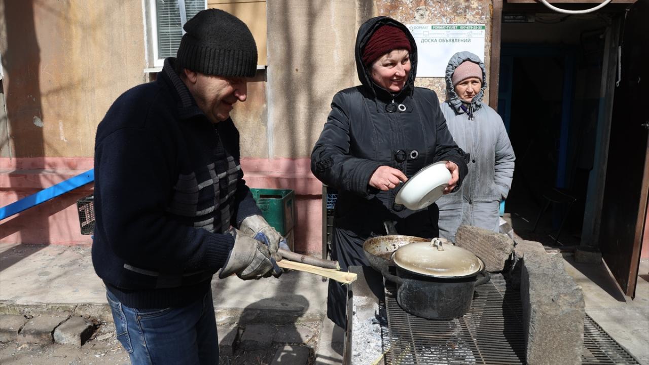 Siviller yemeklerini hasar gören binalarda kesilen elektrik nedeniyle açık alanda yaktıkları ateş üzerinde pişirdi.