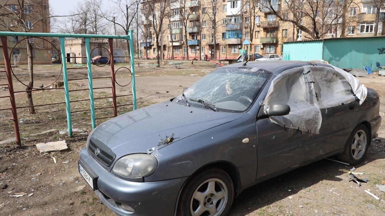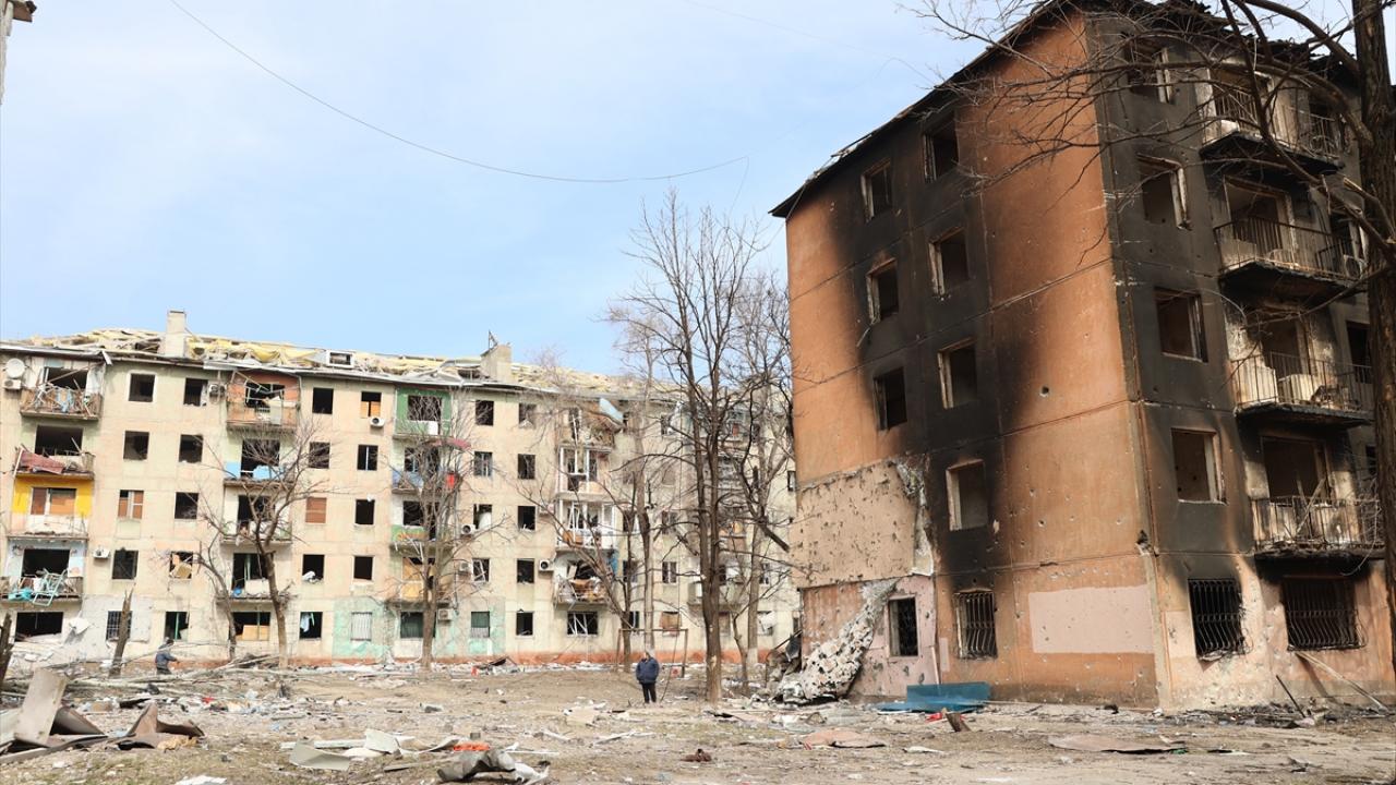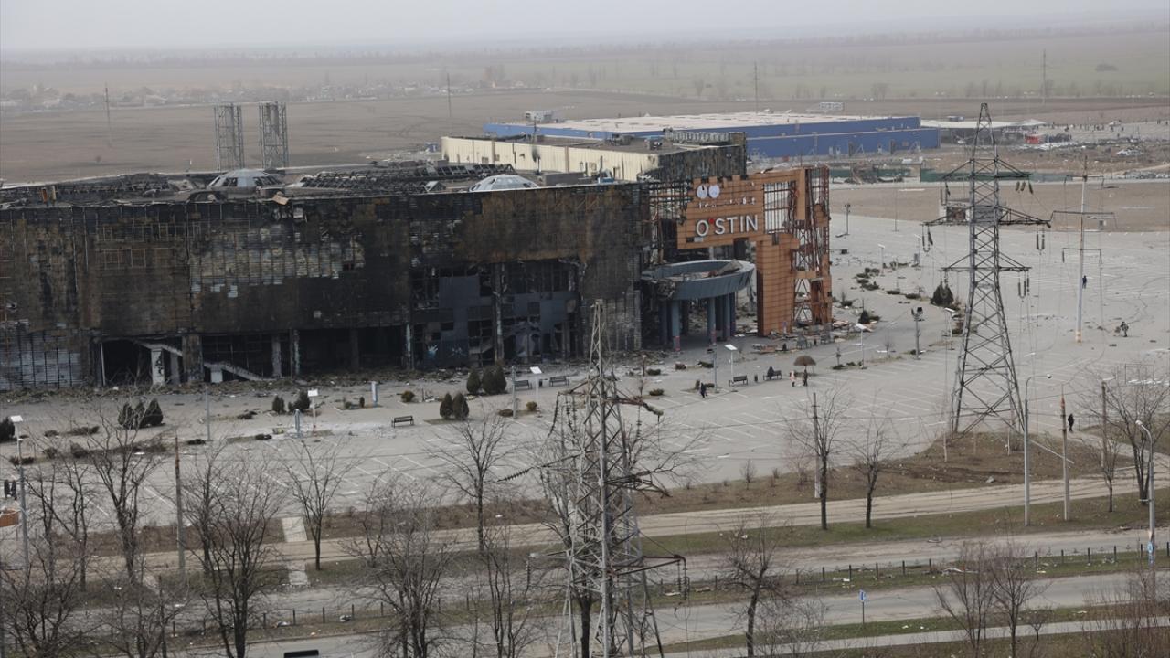 Rusya`nın saldırısı altındaki Ukrayna`nın Mariupol kenti merkezinde çatışmalar sonucu bir çok bina zarar gördü.
