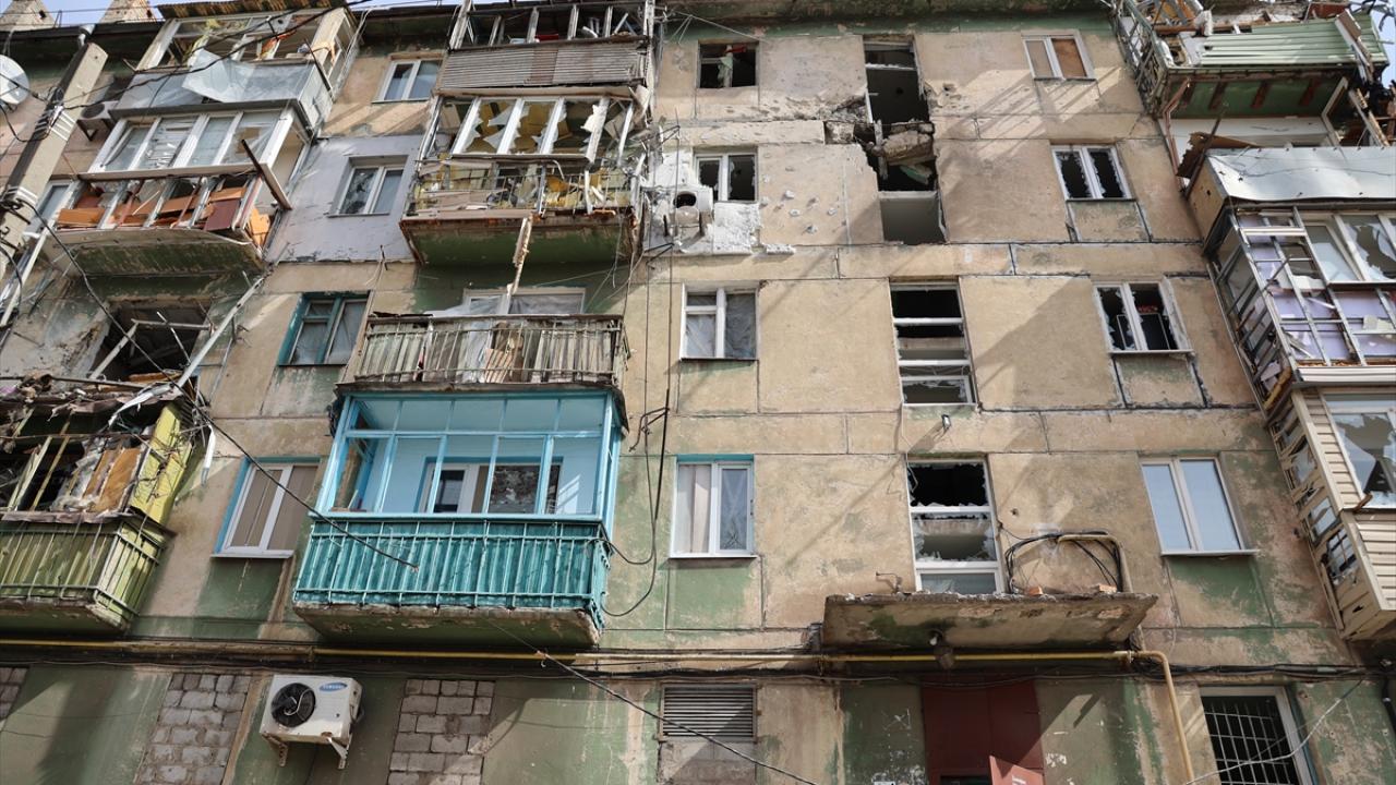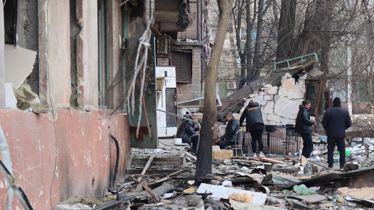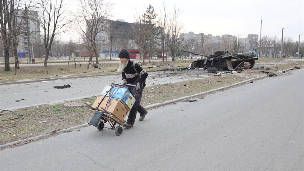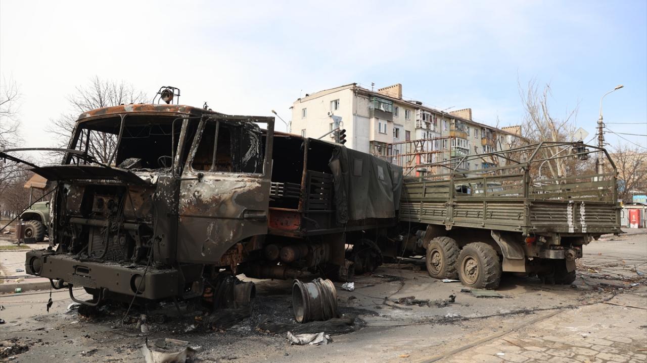Rusya`nın saldırısı altındaki Ukrayna`nın Mariupol kenti merkezinde çatışmalar sonucu bir çok bina zarar gördü.