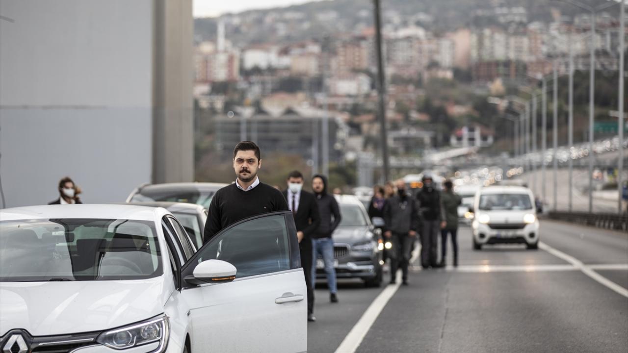 Vatandaşlar, saat 09.05`i gösterdiğinde 15 Temmuz Şehitler Köprüsü`nde araçlarını durdurarak saygı duruşunda bulundu.