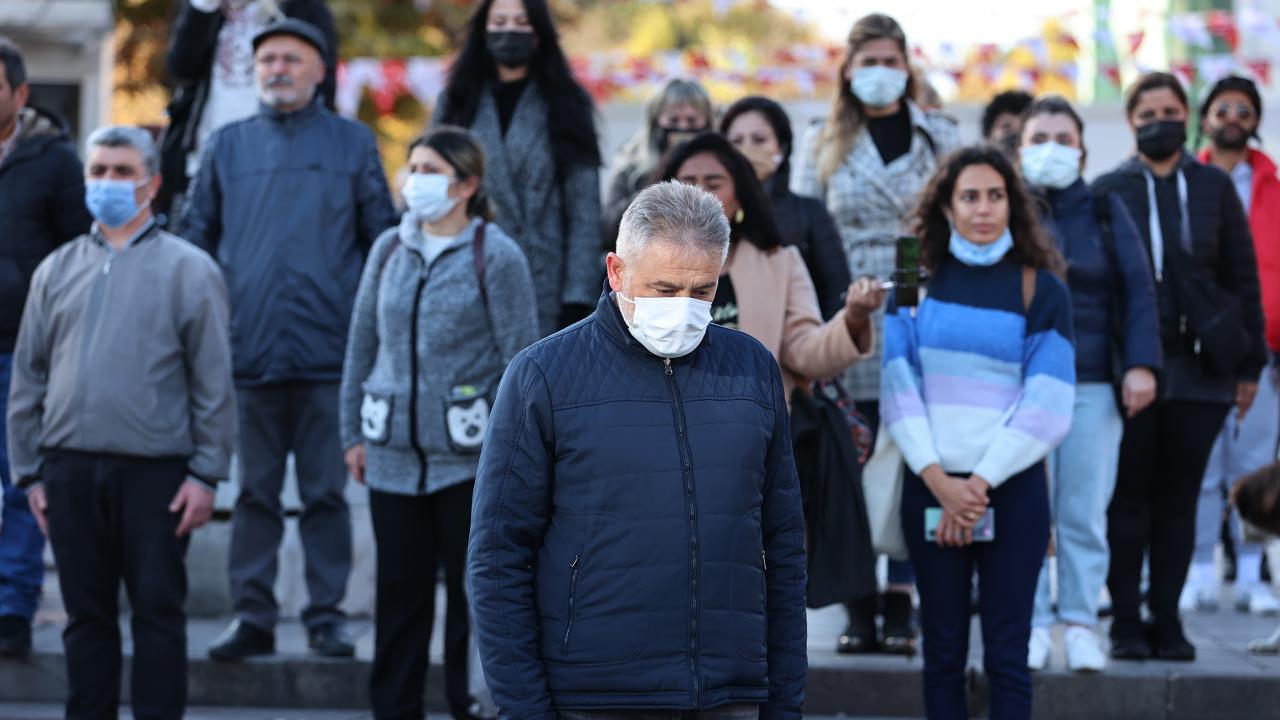 Saat 09.05`te sirenlerin çalmasıyla meydandaki vatandaşlar saygı duruşunda bulundu.