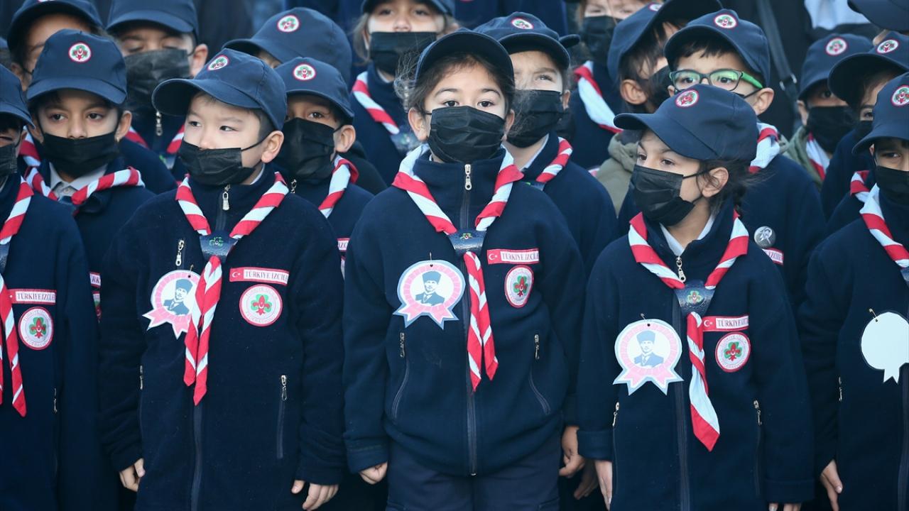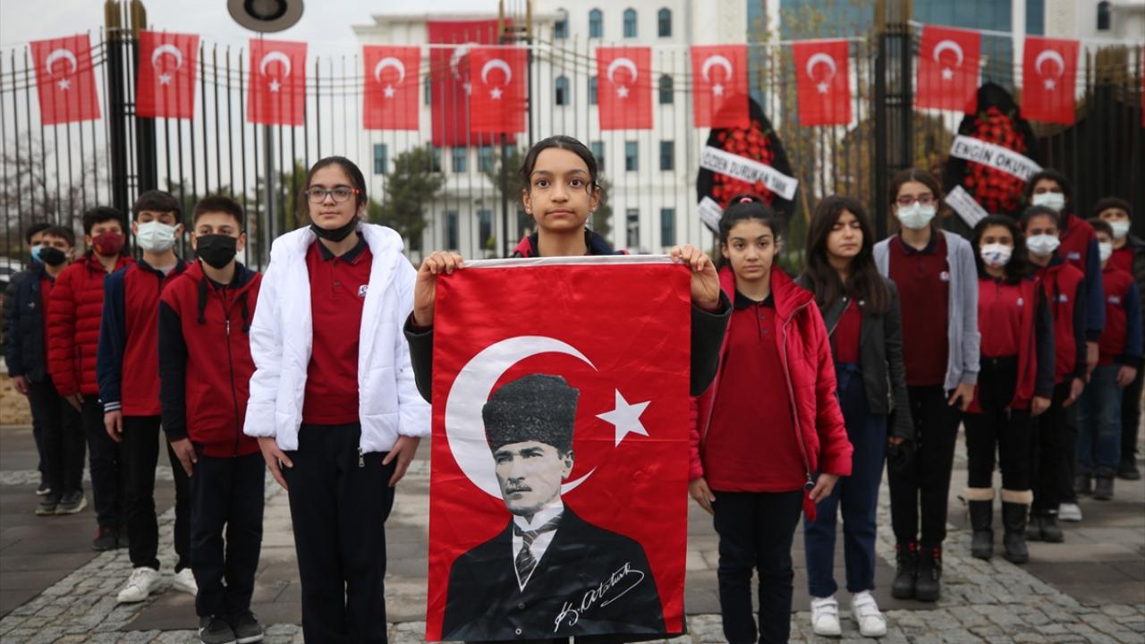 Saat 09.05`te öğrenciler saygı duruşunda bulundu.