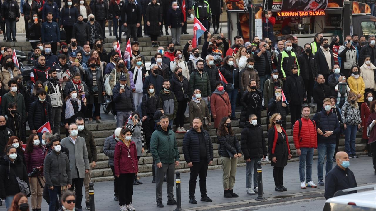 Galata Köprüsü`ndeki balıkçılar saat 09.05`te saygı duruşunda bulundu.
