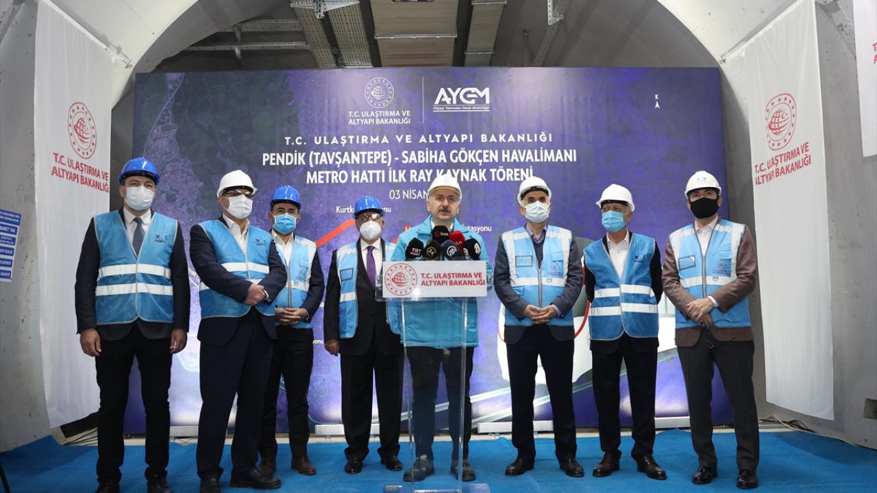 Ulaştırma ve Altyapı Bakanı Adil Karaismailoğlu, inşai faaliyetlerinin yüzde 91'i tamamlanan ve ilk ray kaynağı bugün yapılan Pendik Tavşantepe- Sabiha Gökçen Havalimanı metro hattında çalışmaların devam ettiğini duyurdu.