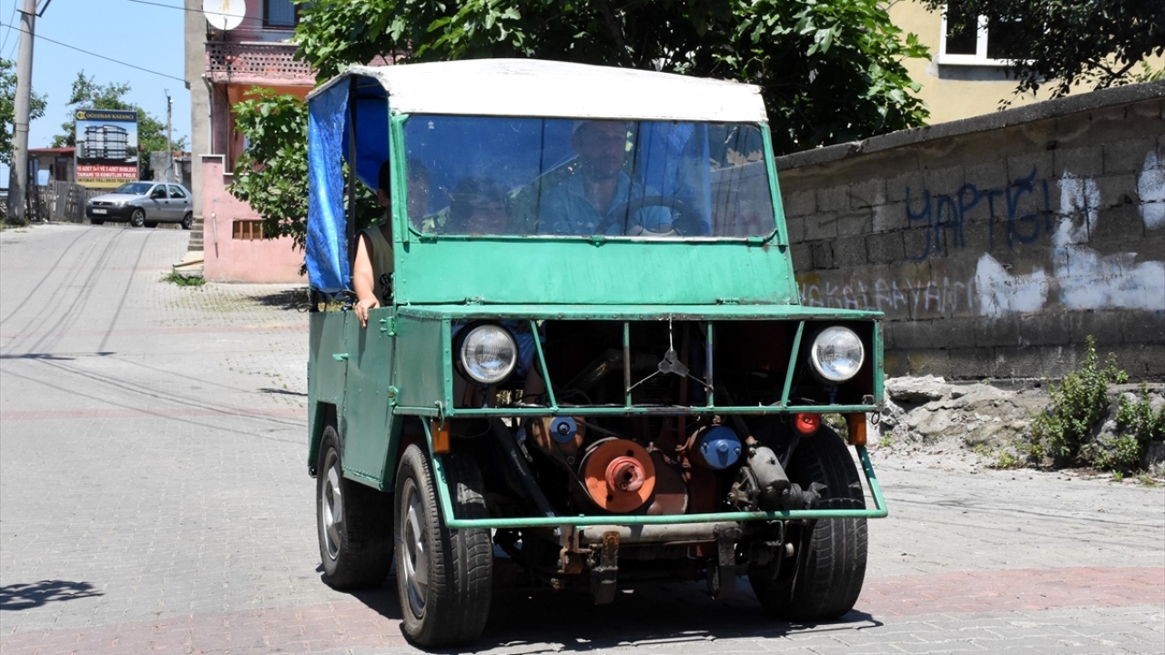 Zonguldak'ta yaşayan ilkokul mezunu 62 yaşındaki Mehmet Tavlı, sac parçalarının yanı sıra inşaat demiri ve sandal motoru kullanarak köyünde kullanmak için mini araç yaptı.