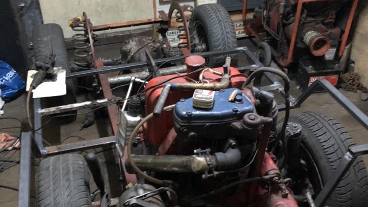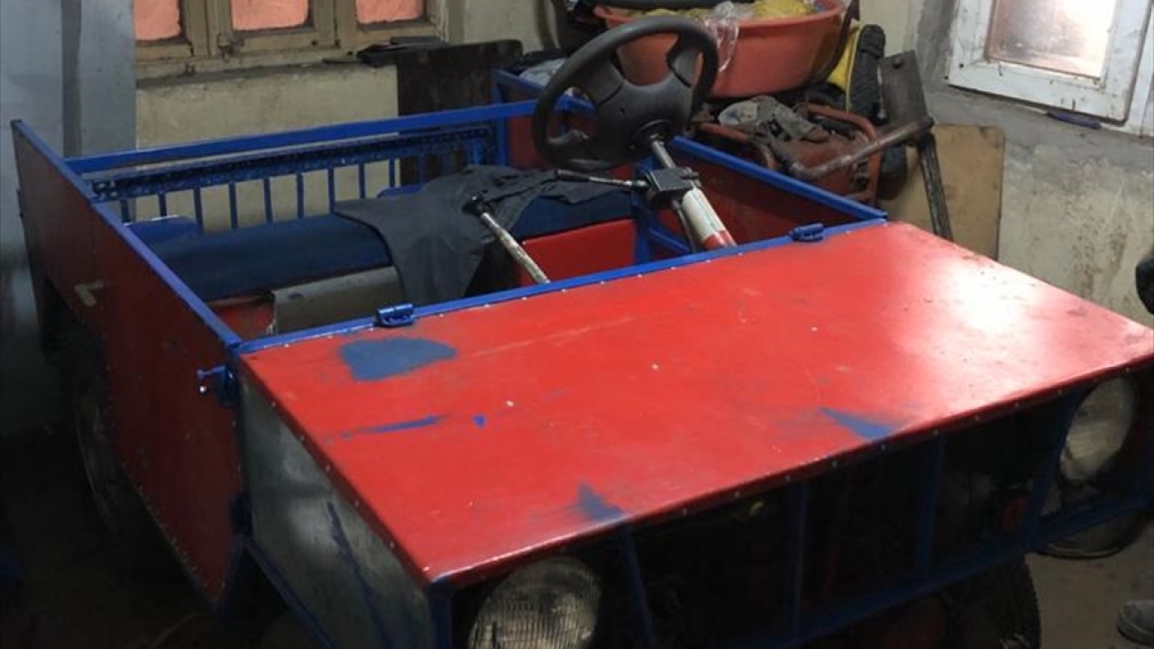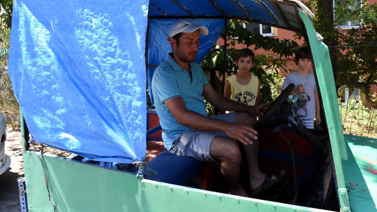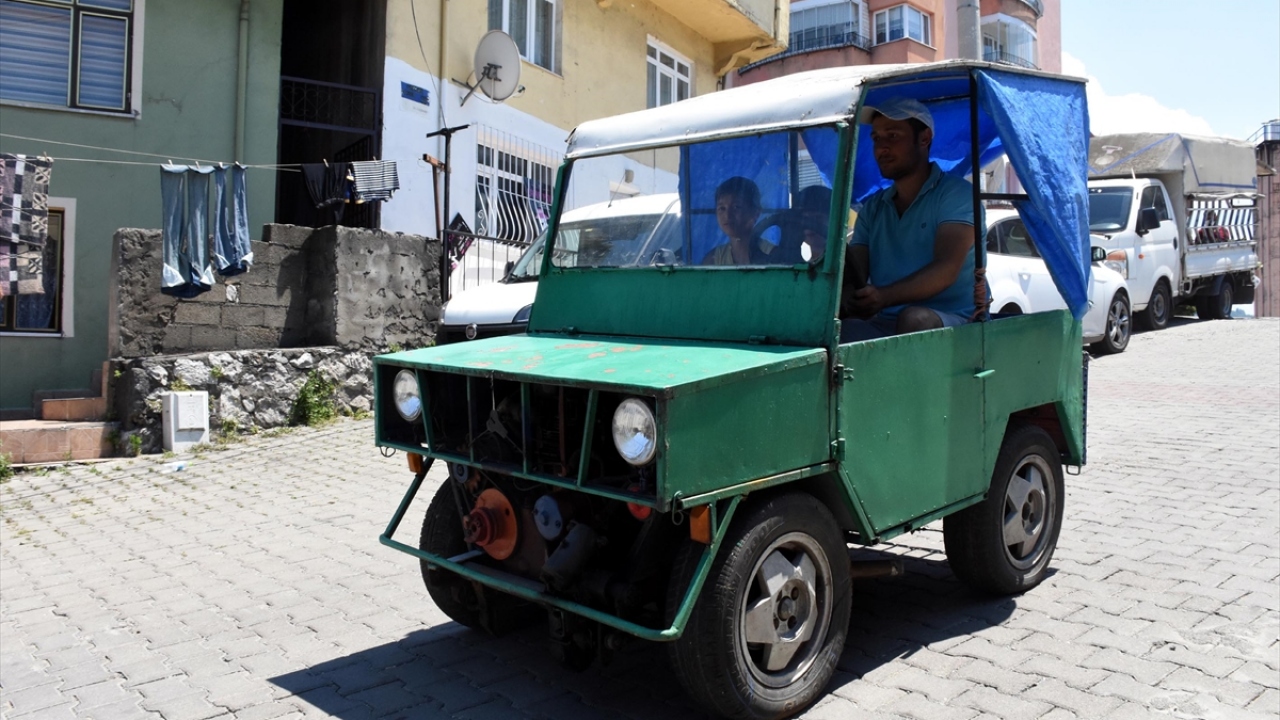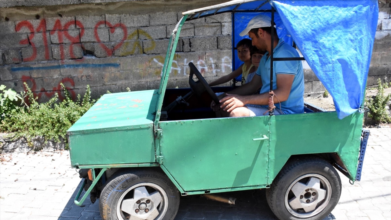 Sac parçalarından aracın kaportasını oluşturan Tavlı, inşaat demiriyle sağlamlaştırdığı aracının motorunu ise sandal motorundan yaptı.