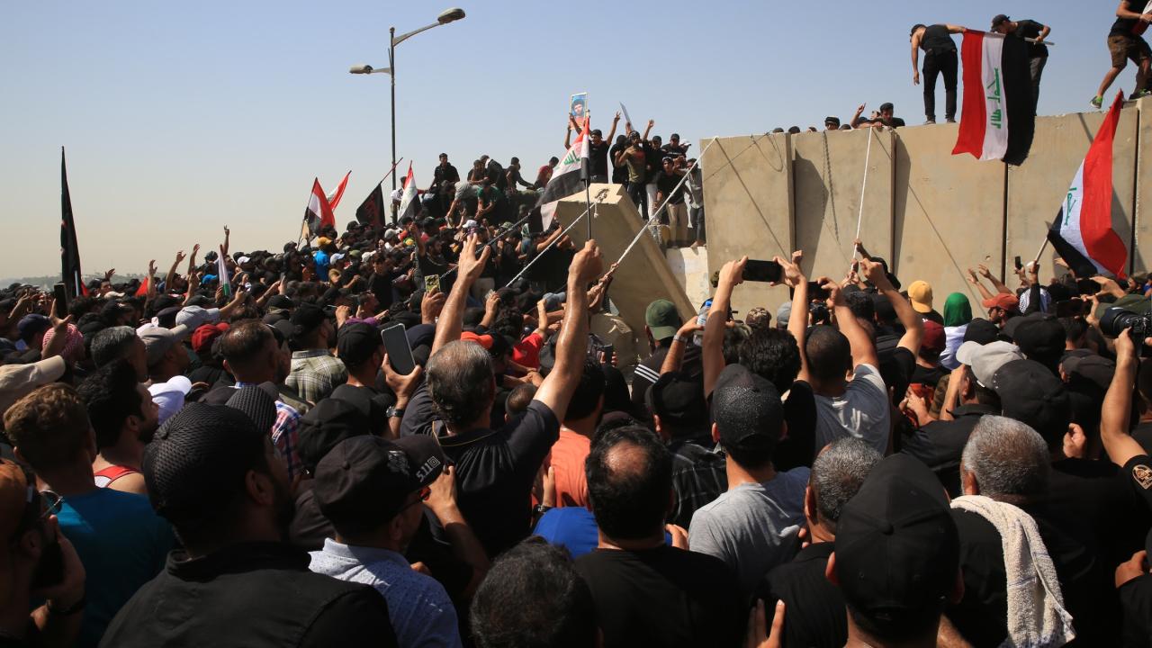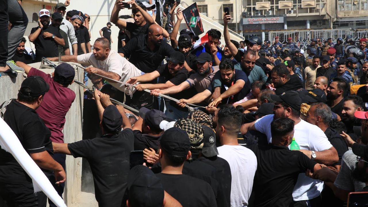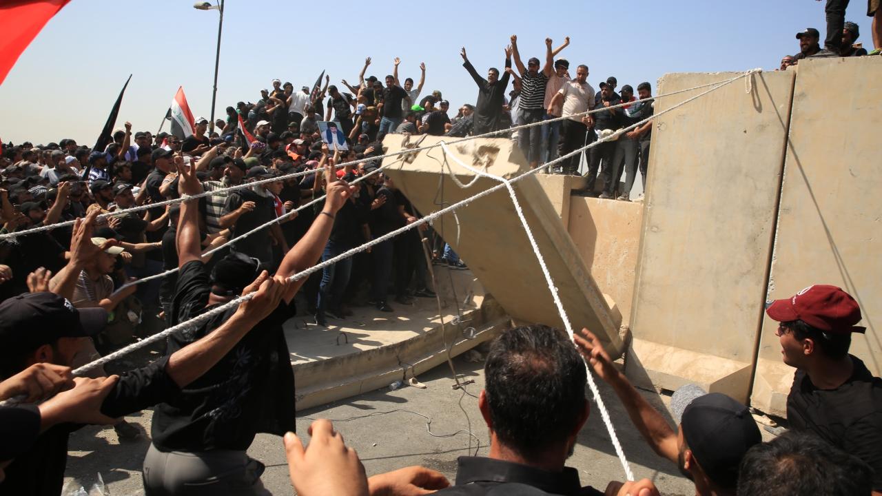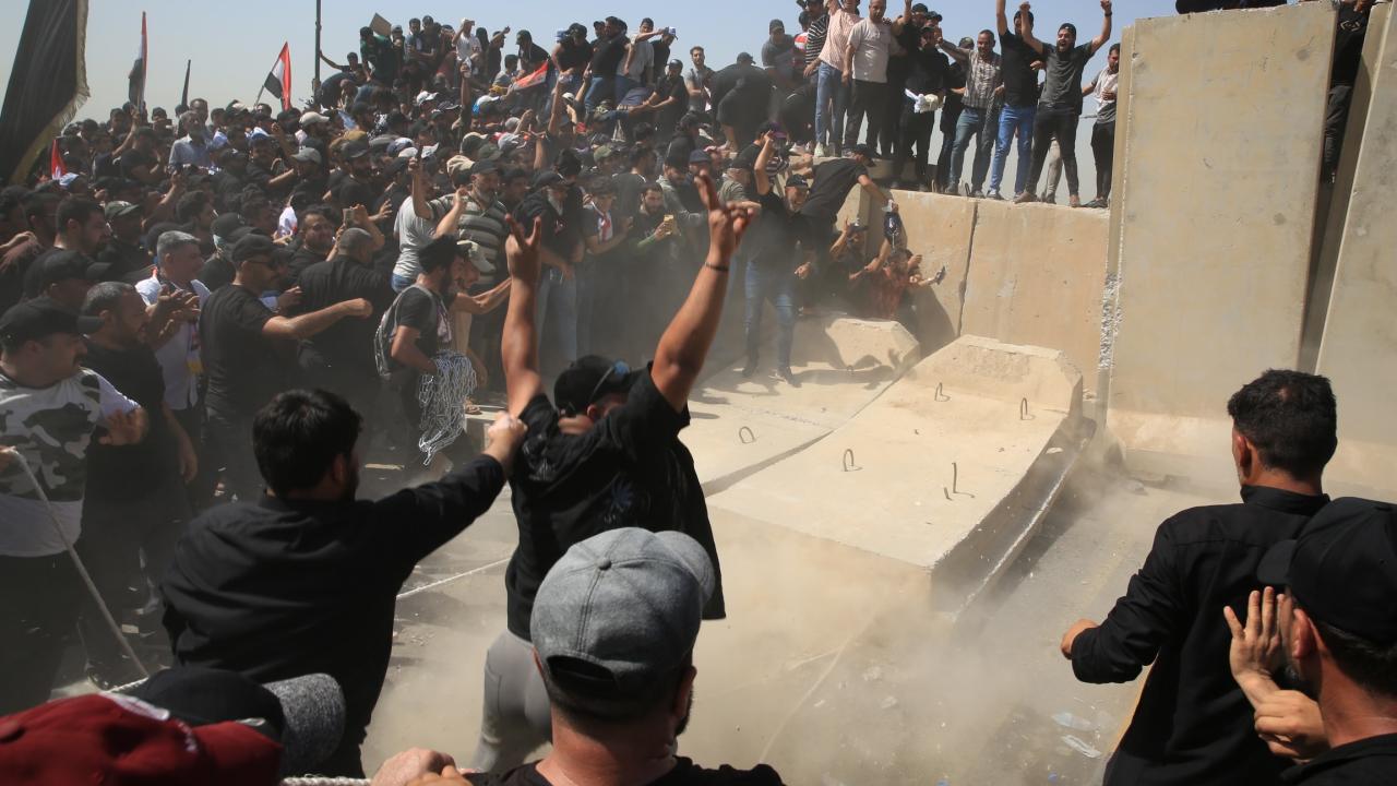 Irak’ın başkenti Bağdat’ta Sadr Hareketi lideri Mukteda es-Sadr'ın destekçileri, Yeşil Bölge çevresindeki beton bariyerlerini aşarak içeri girmeye çalıştı. Yeşil Bölge'yi basmaya çalışanlar, güvenlik güçlerinin müdahalesiyle karşılaştı.