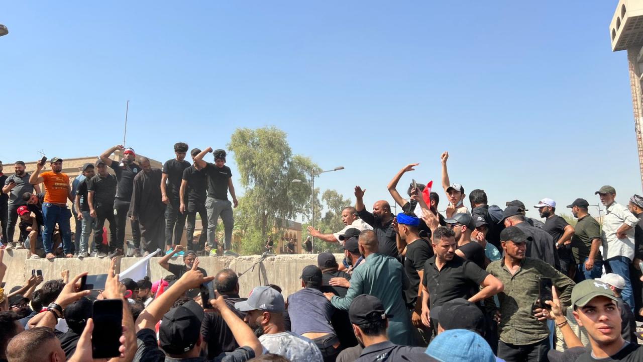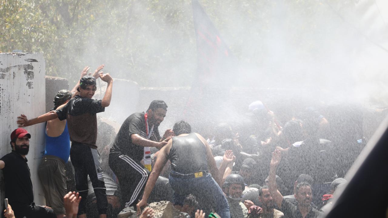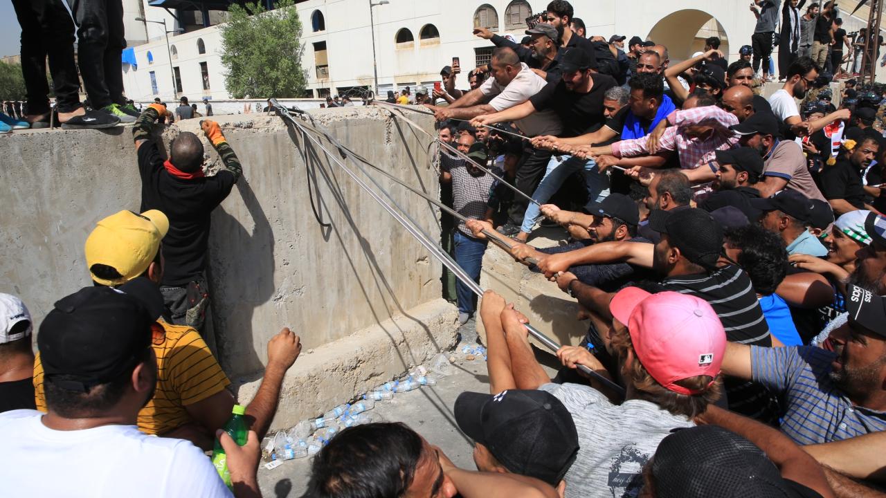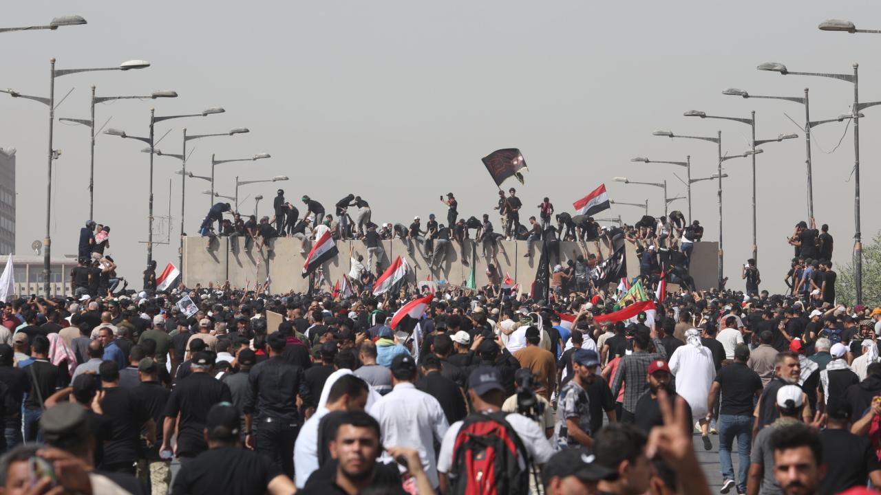 Irak’ın başkenti Bağdat’ta Sadr Hareketi lideri Mukteda es-Sadr'ın destekçileri, Yeşil Bölge çevresindeki beton bariyerlerini aşarak içeri girmeye çalıştı. Yeşil Bölge'yi basmaya çalışanlar, güvenlik güçlerinin müdahalesiyle karşılaştı.