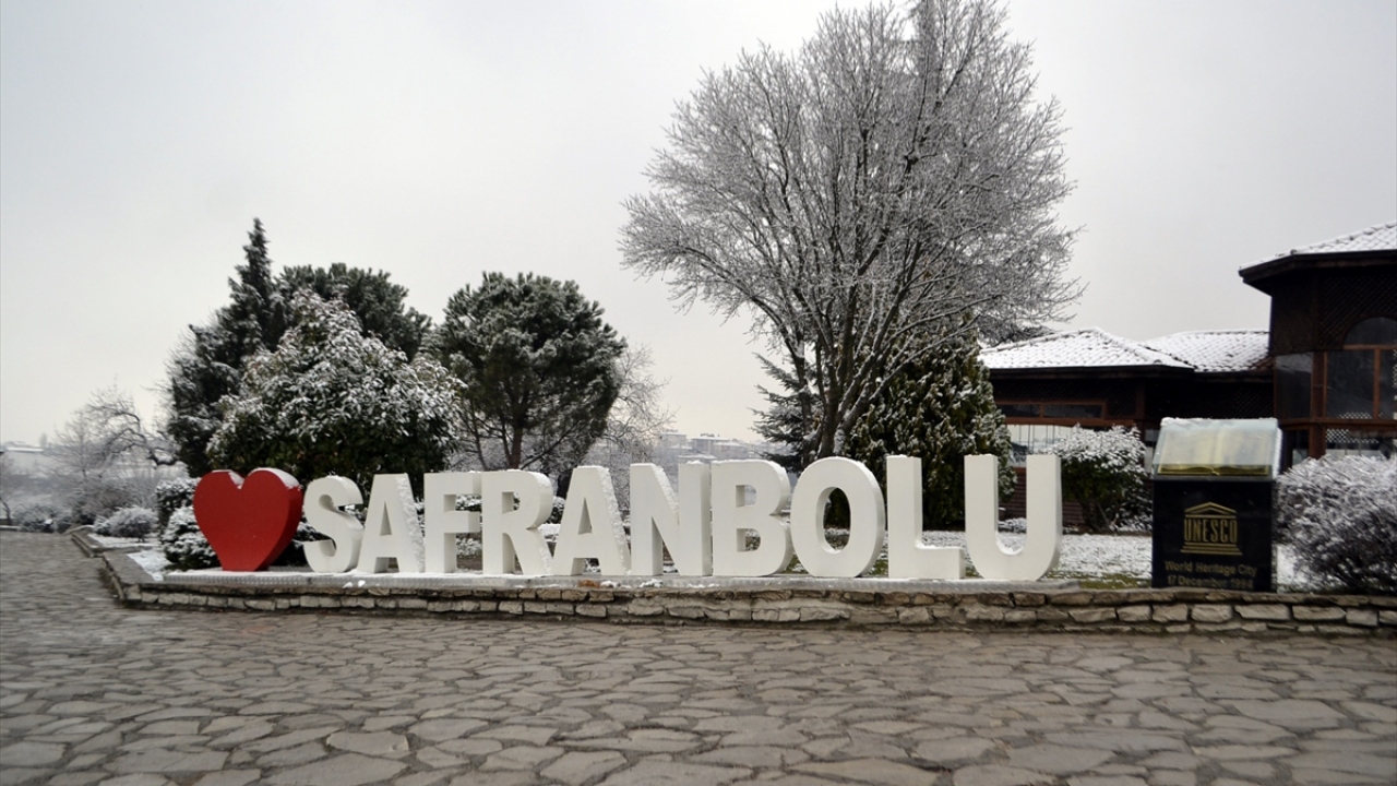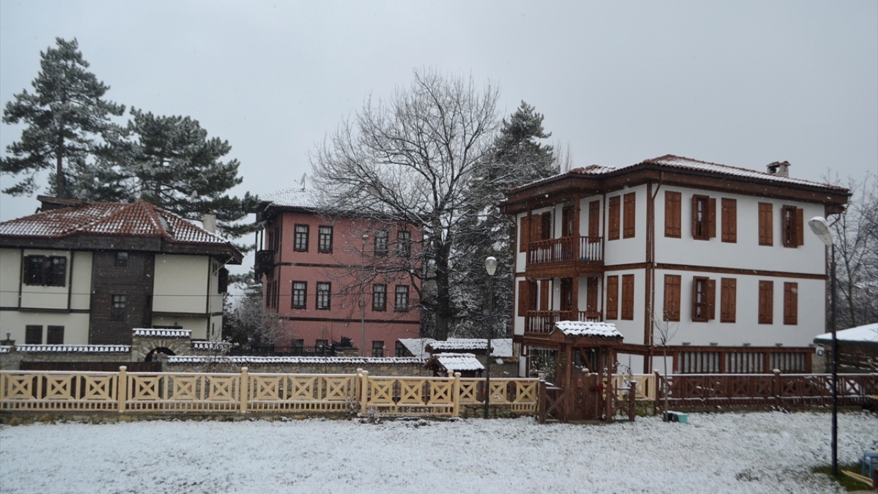UNESCO Dünya Miras Listesi'nde yer alan Safranbolu ilçesinde tarihi konaklar beyaz örtüyle kaplandı.