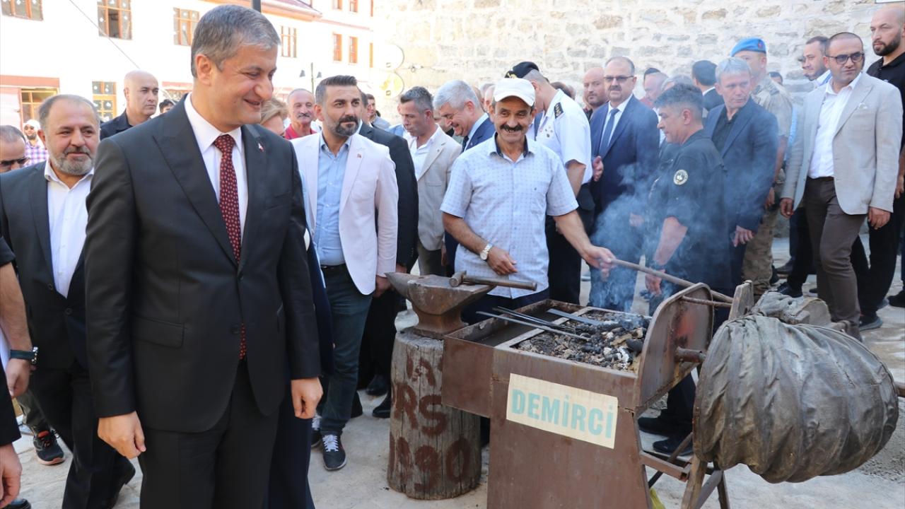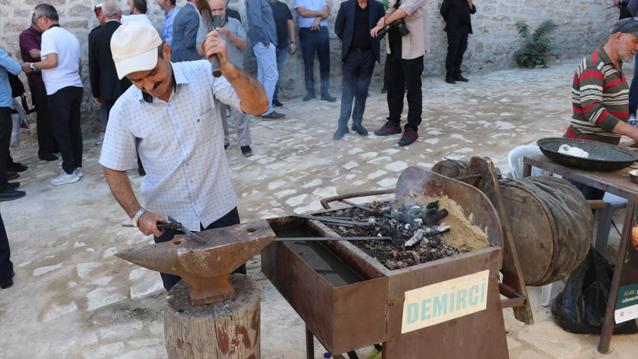 Ahilik pilavı ikram edilen programda Vali Yavuz, unutulmaya yüz tutmuş meslekleri icra eden zanaatkarları ziyaret etti, demir dövdü.