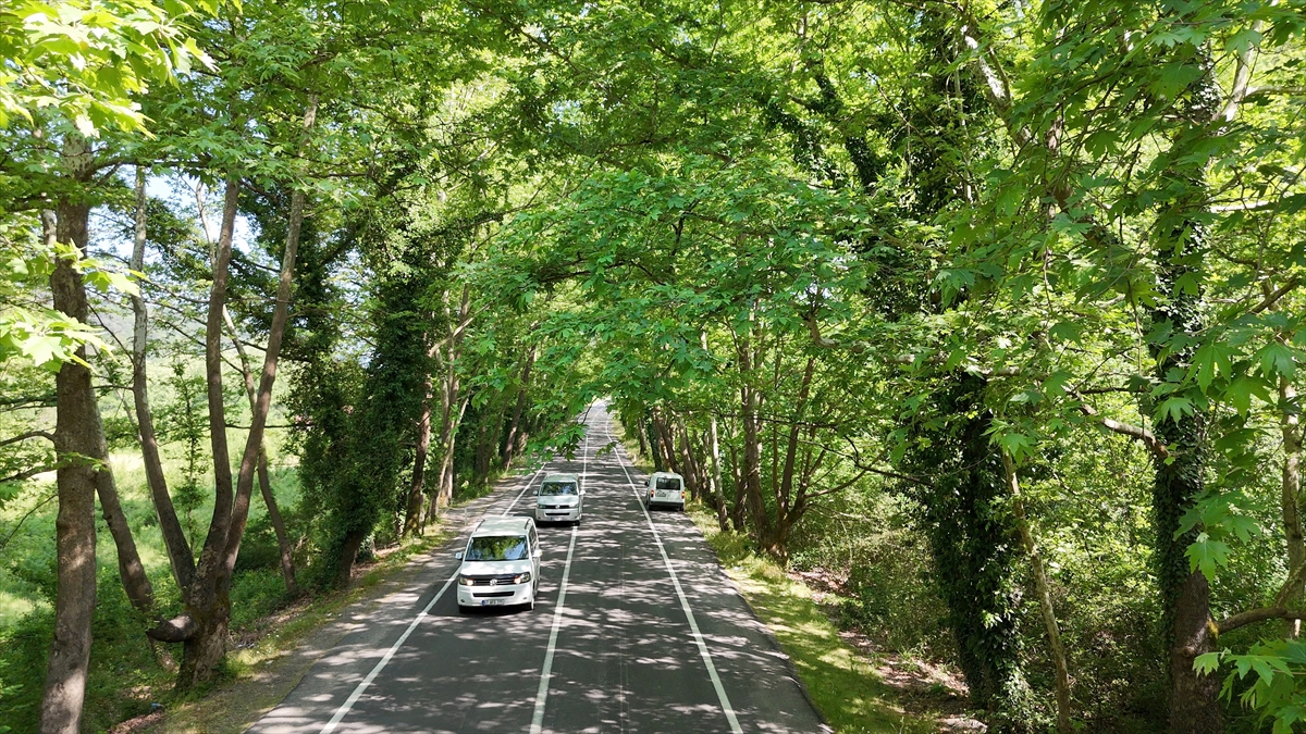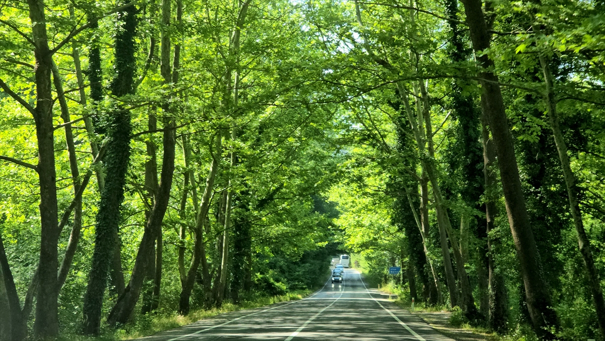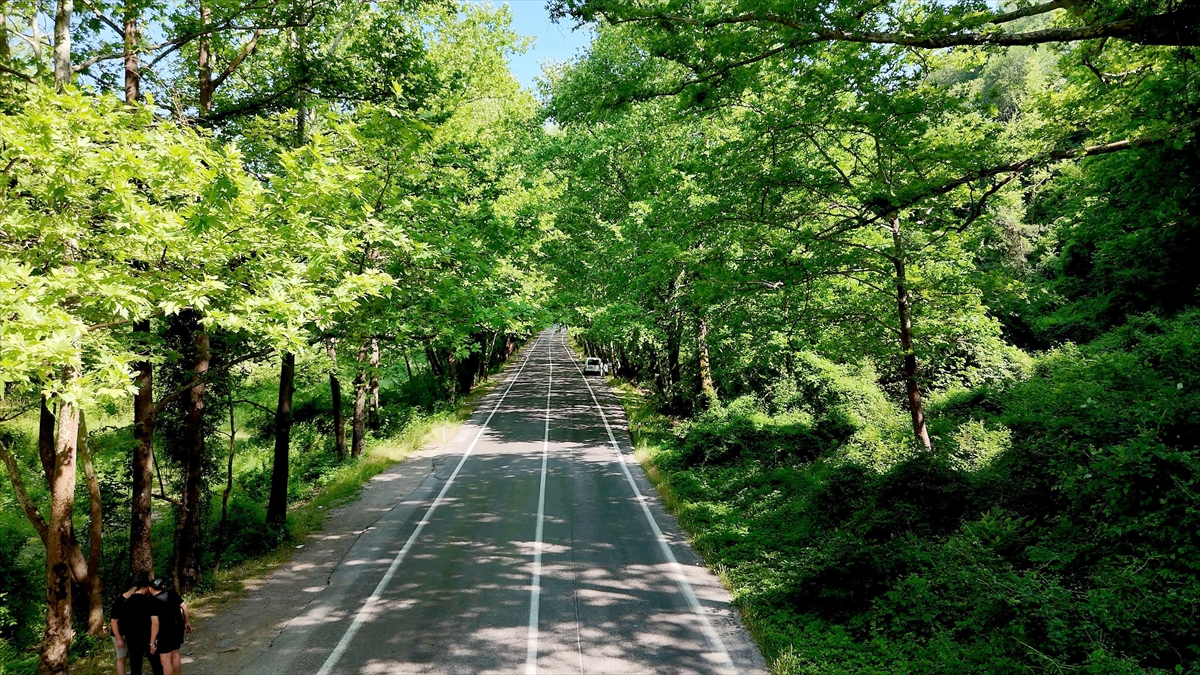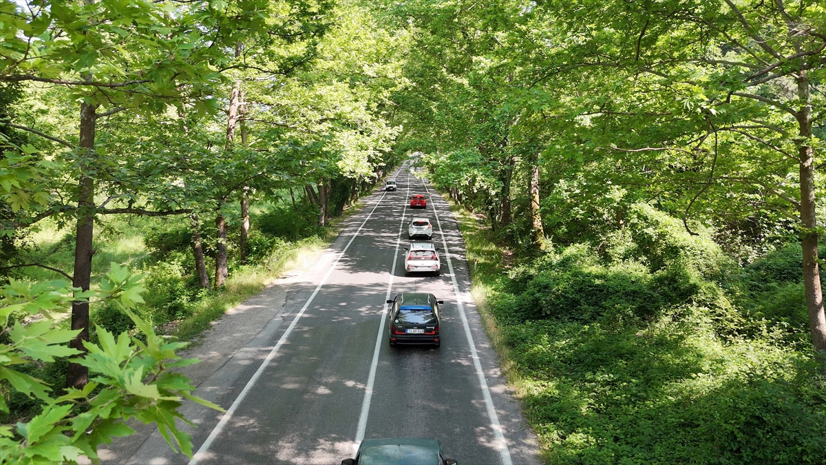 Karabük'ün UNESCO Dünya Miras Listesi'nde bulunan ilçesi Safranbolu'daki güneşin zorlukla ulaşmaya çalıştığı yemyeşil ağaç tünelli yollar ilgi çekiyor.