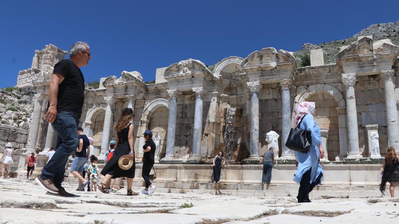Burdur'da ayağa kaldırılan ve antik dönemdeki kaynağının suyu verilen anıtsal çeşmeleriyle dünyadaki nadir antik kentlerden olan Sagalassos ve Kibyra antik kentleri, bayram tatilinde ziyaretçilerine tarihte yolculuk yapma imkanı sunuyor.