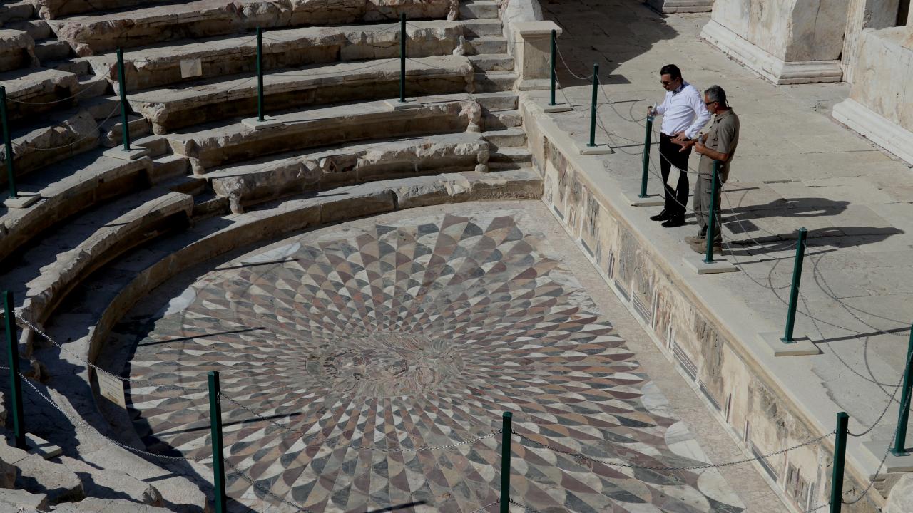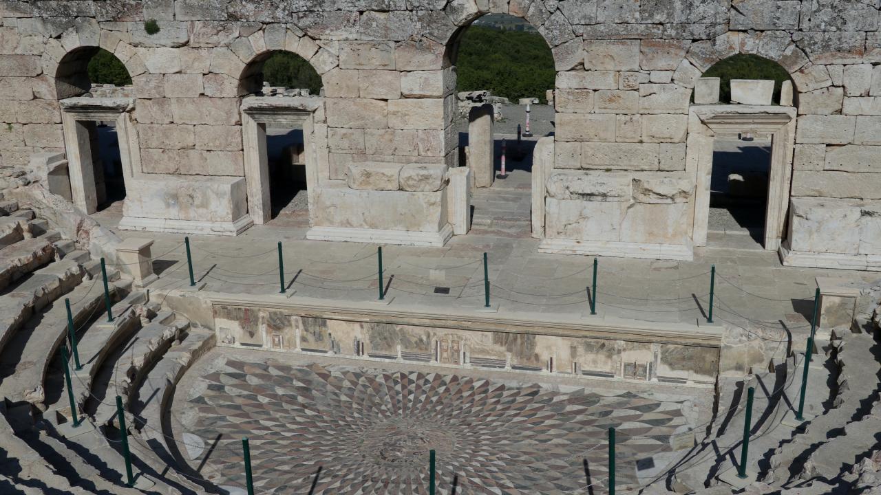 Kibyra`ya gelenler de kentin 3. terasında bulunan 168`i orijinal, 192 mimari bloktan oluşan iki havuzuna su dolan anıtsal çeşmenin etrafında dolaşıp, yapım tekniği açısından eşsiz medusa mozaikli odeonu görüp, Türkiye`de antik döneme ilişkin en uzun gladyatör frizlerinin çıkarıldığı stadyumda dinlenebilecek.