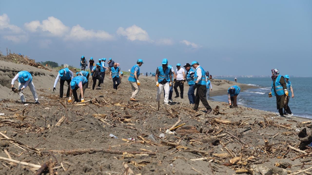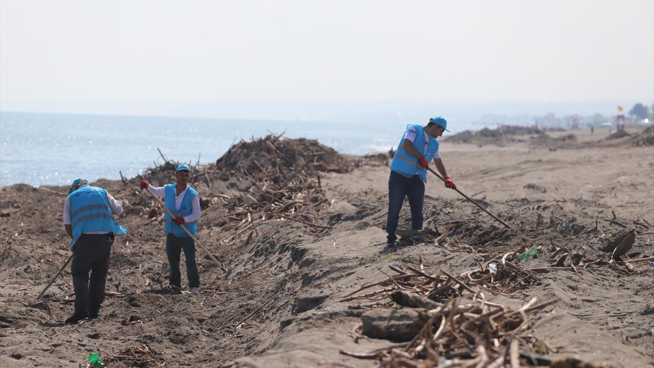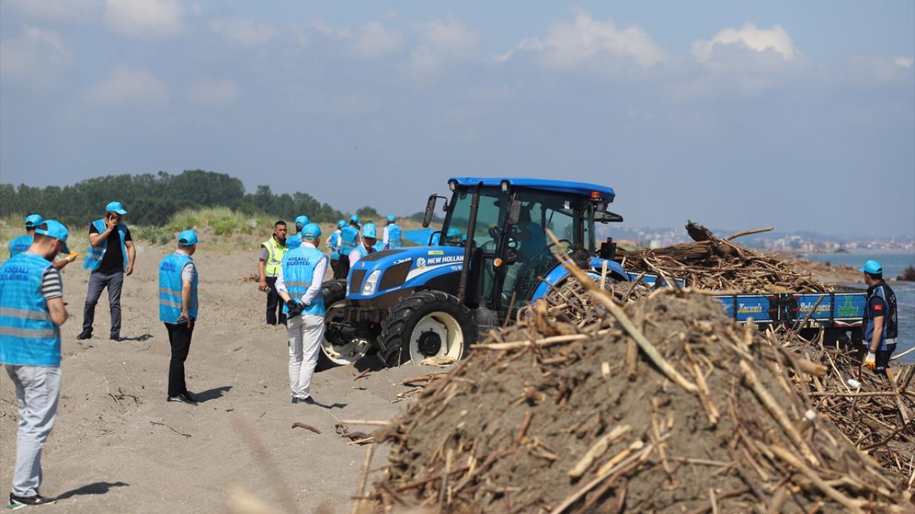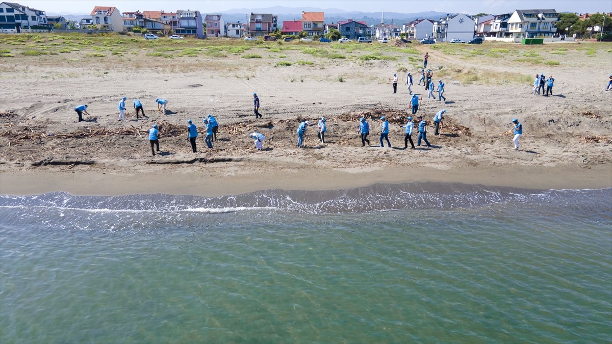 Sakarya'da üç gün etkili olan sağanağın ardından kirlenen Karadeniz'e kıyısı bulunan Kocaali ilçesindeki 16 kilometrelik sahil şeridinde temizlik çalışması yürütülüyor.