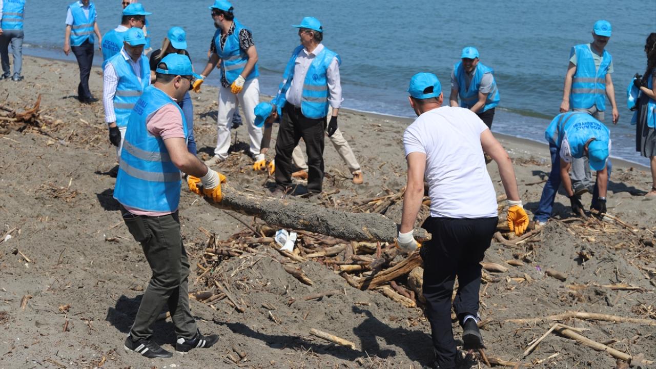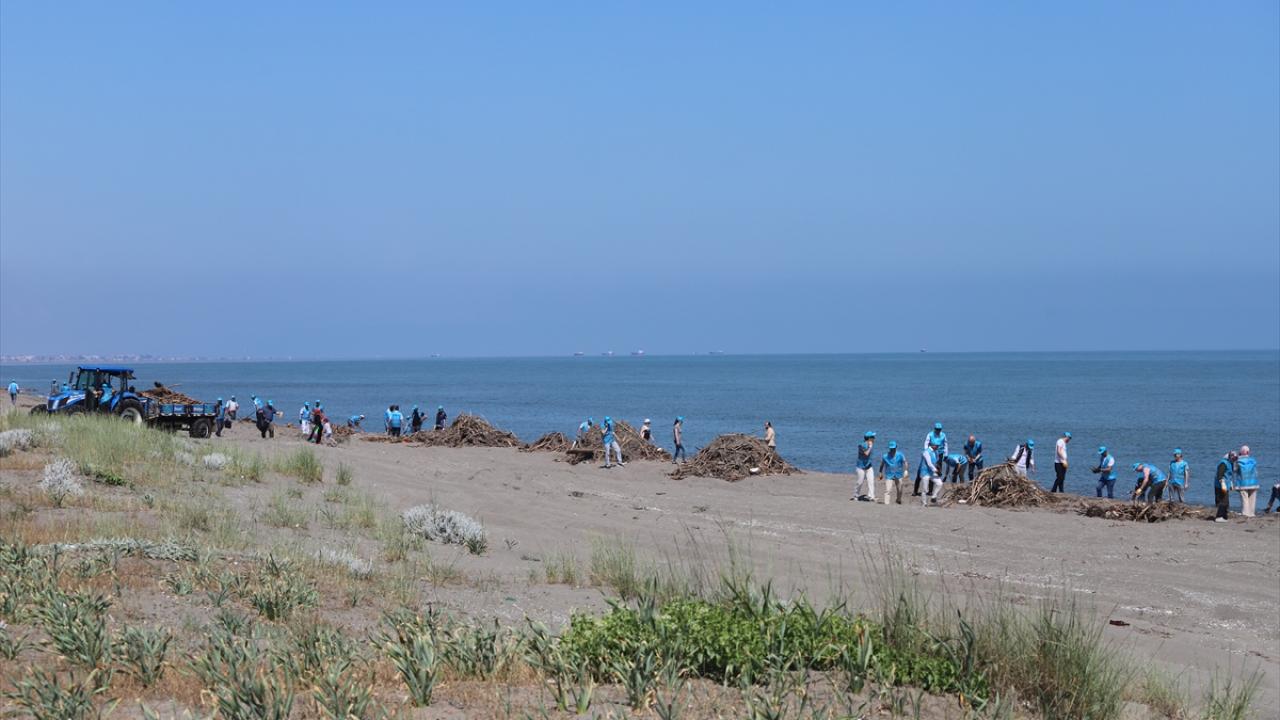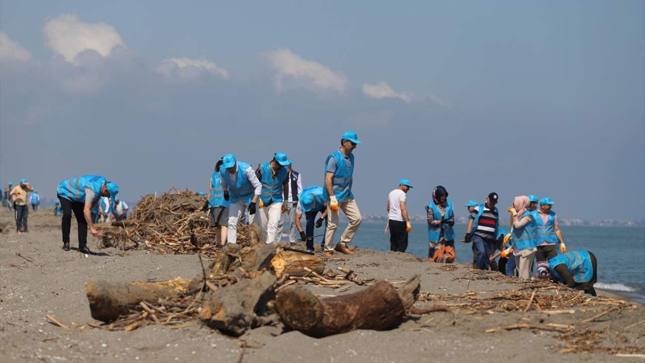 Sakarya'da üç gün etkili olan sağanağın ardından kirlenen Karadeniz'e kıyısı bulunan Kocaali ilçesindeki 16 kilometrelik sahil şeridinde temizlik çalışması yürütülüyor.