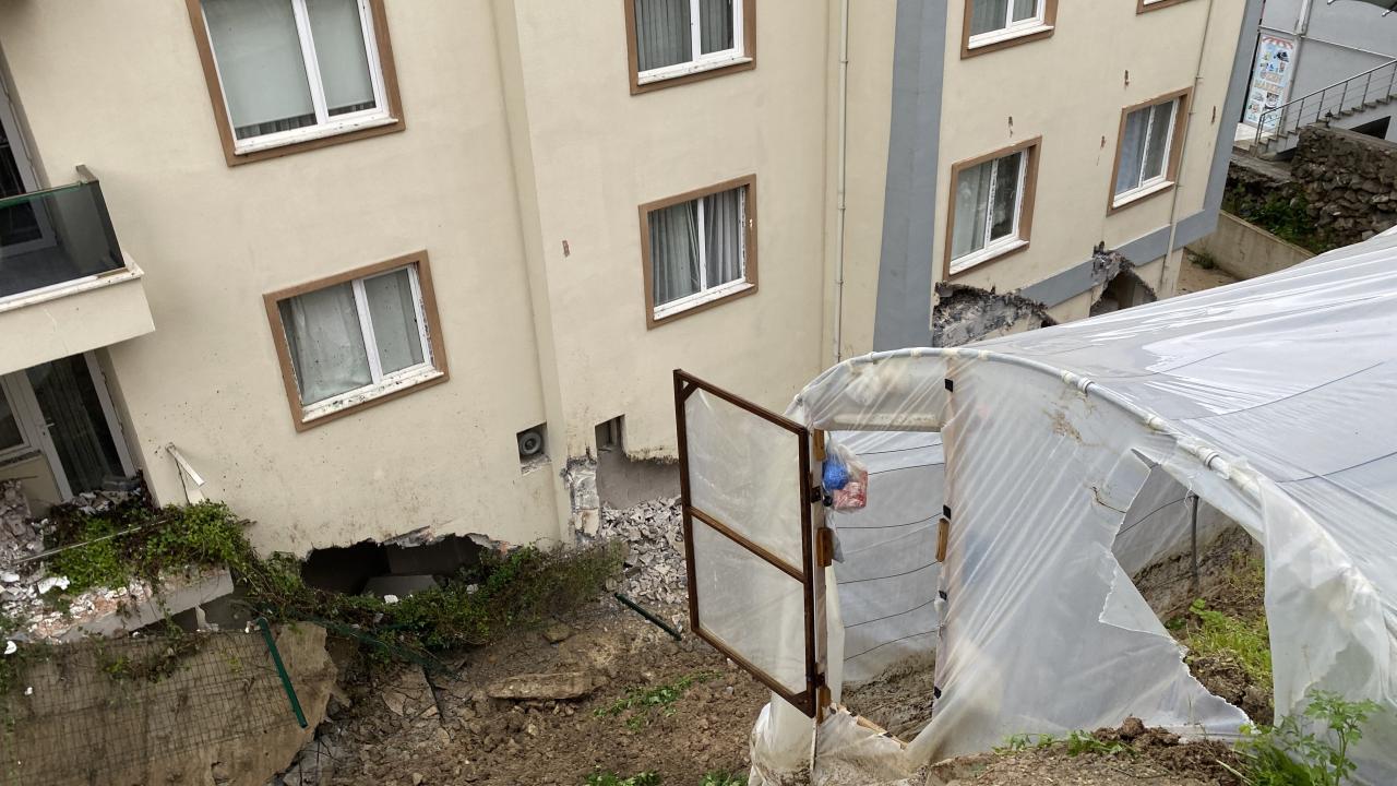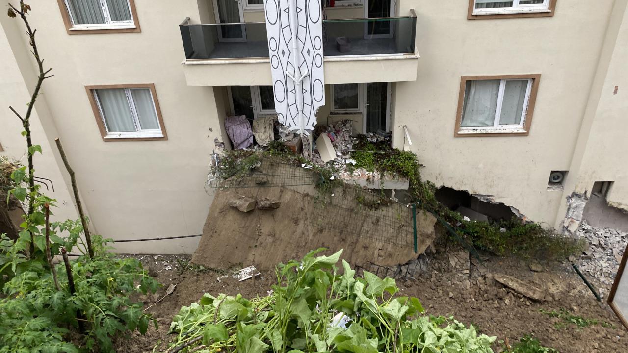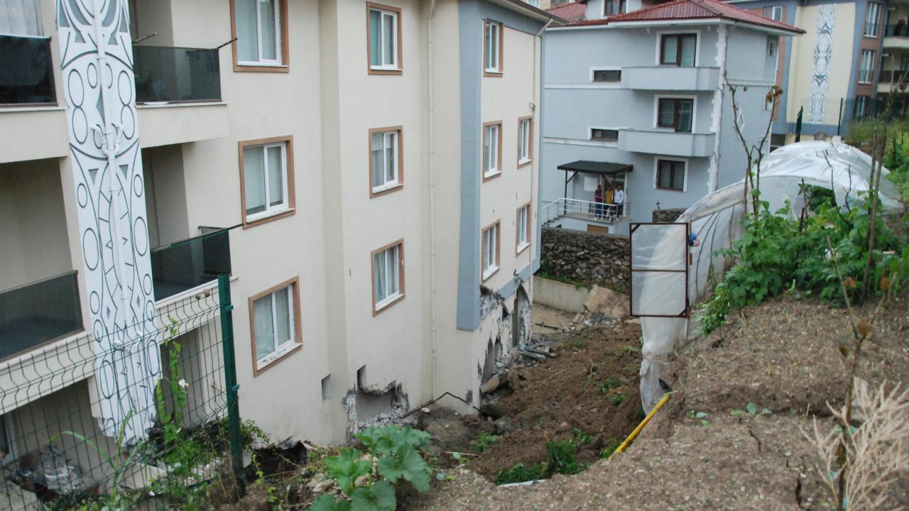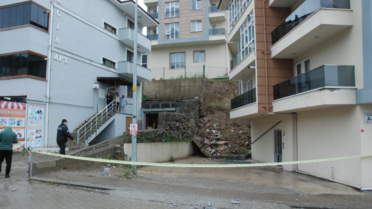 Bartın’da etkili olan sağanak sonrası bir sitenin istinat duvarı çöktü. Çökme sonrası kayan toprak nedeniyle zemin katın duvarları yıkıldı, balkon ve duvarlar zarar gördü, 3 bina tedbir amaçlı boşaltıldı.