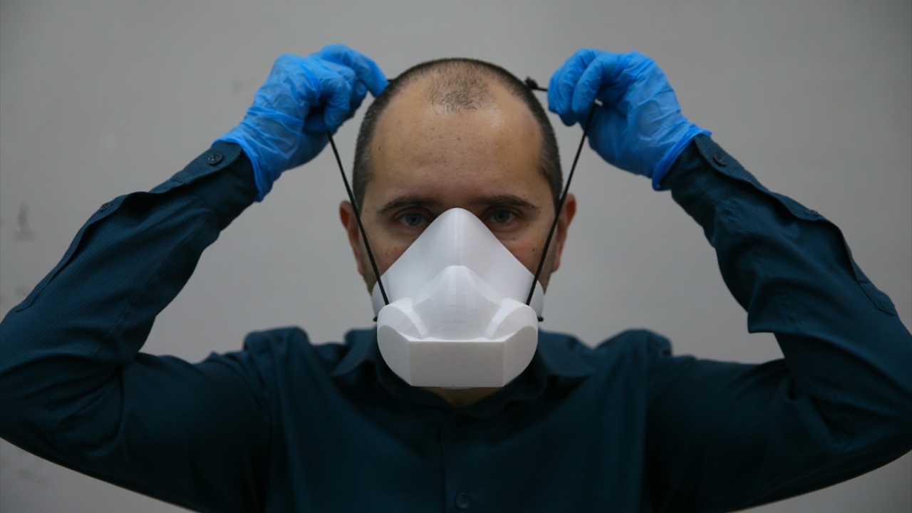 İzmir Ekonomi Üniversitesinde yeni tip koronavirüs (Covid-19) salgınında sağlık çalışanlarının korunması amacıyla hava kanallarına yerleştirilen UVC (Ultraviyole) led sayesinde kendi kendini temizleyebilen maske geliştirildi.