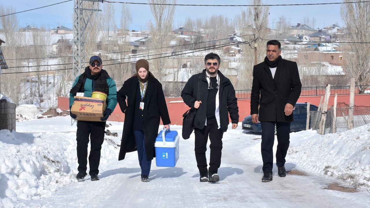 Van'ın Saray ilçesinde görev yapan sağlık çalışanları, kardan dolayı ulaşımın güçlükle sağlandığı karla kaplı yolları aşarak gittikleri kırsal mahallelerde evleri tek tek dolaşarak hastaların kontrollerini yapıyor.