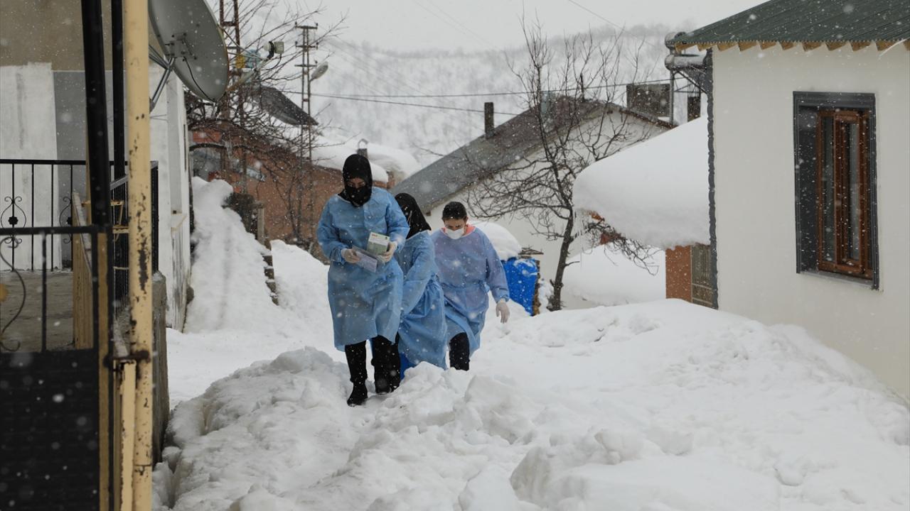 Bingöl'de yeni tip koronavirüs (Covid-19) ile mücadele kapsamında görev yapan mobil sağlık ekipleri, karlı yolları aşarak 88 yaşındaki Fatma Çağan'a ulaşıp, aşısını yaptı.
