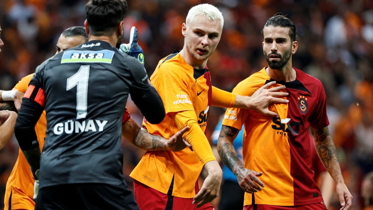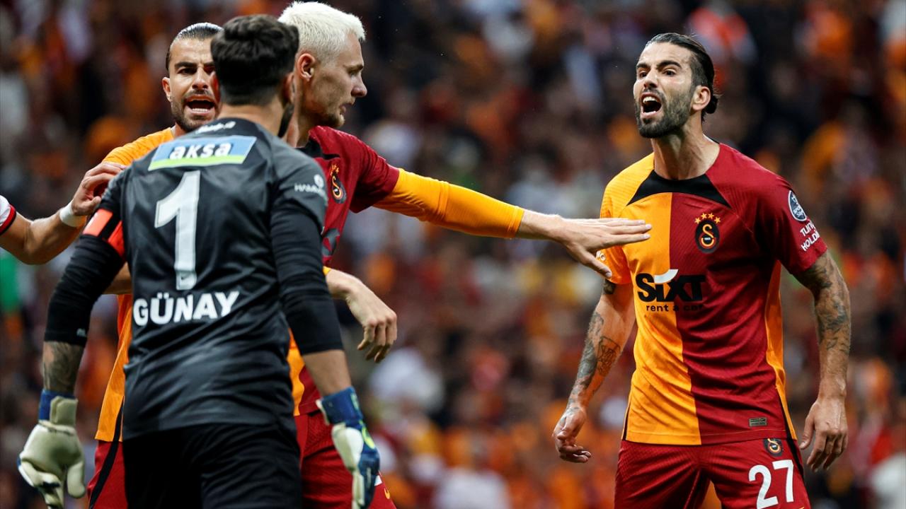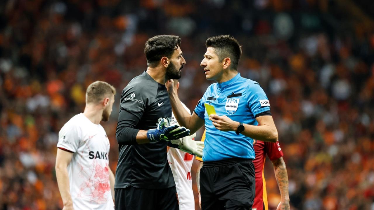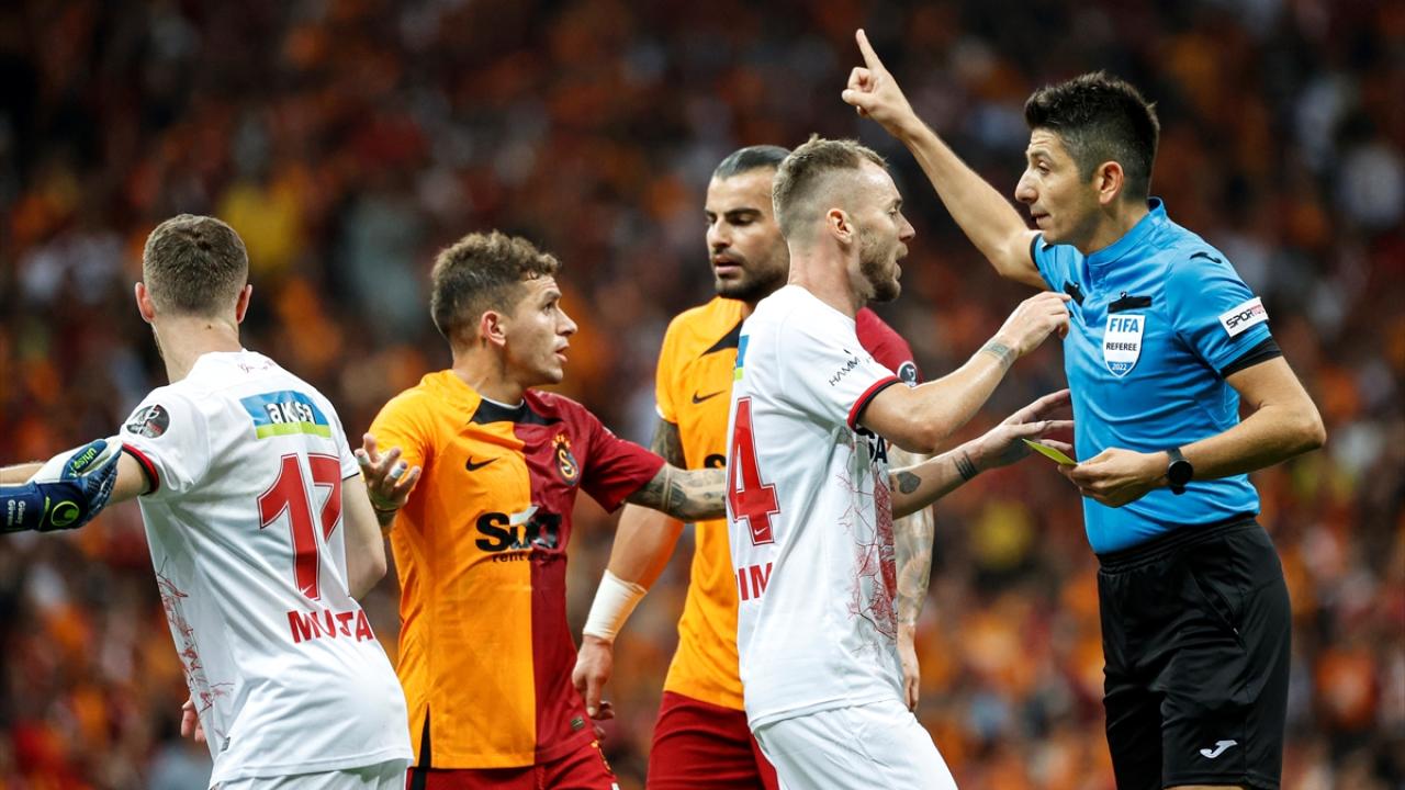 Tecrübeli hakem, ayrıca ilk yarının uzatma bölümünde kararlarına sert bir şekilde itiraz eden Galatasaray Teknik Direktörü Okan Buruk`a da sarı kartını çıkardı.