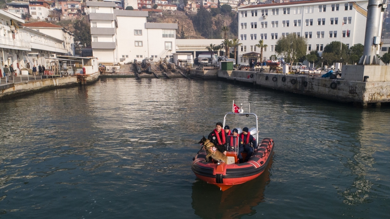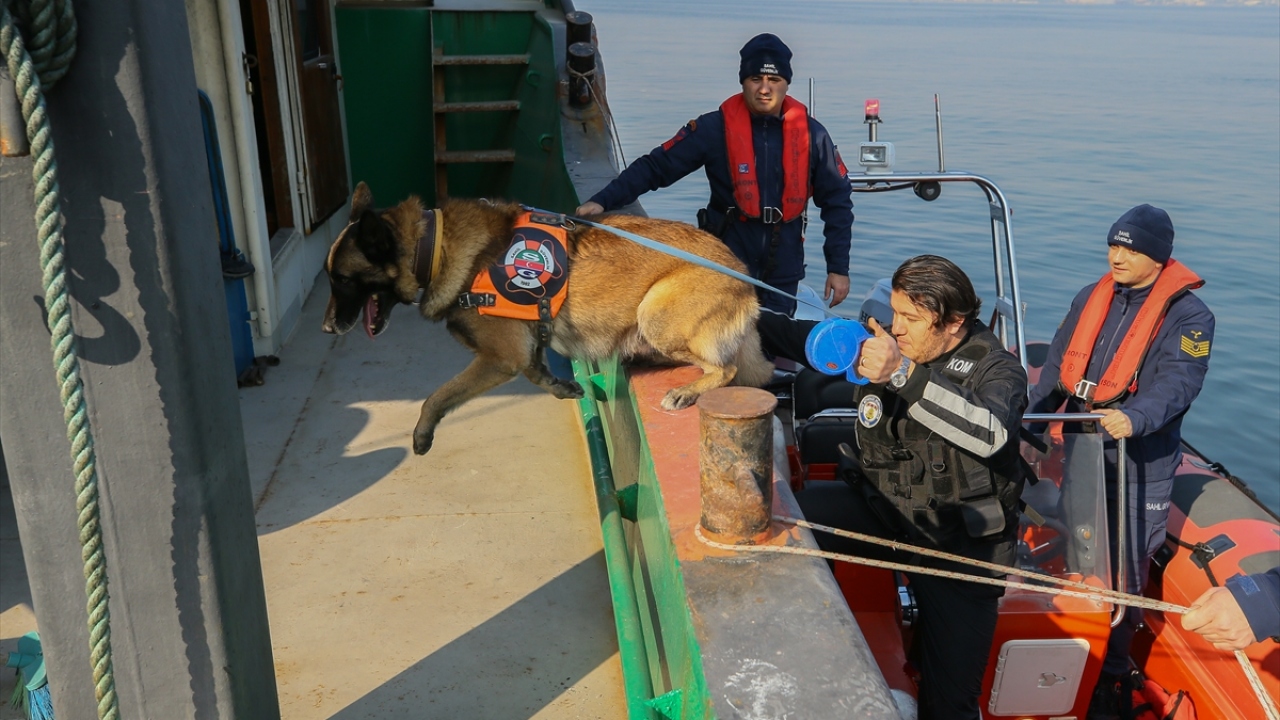 Operasyona katılan 2 narkotik köpeğinden biri olan Barut, 12 gün boyunca ağır deniz şartlarında görevini başarıyla yaptı.