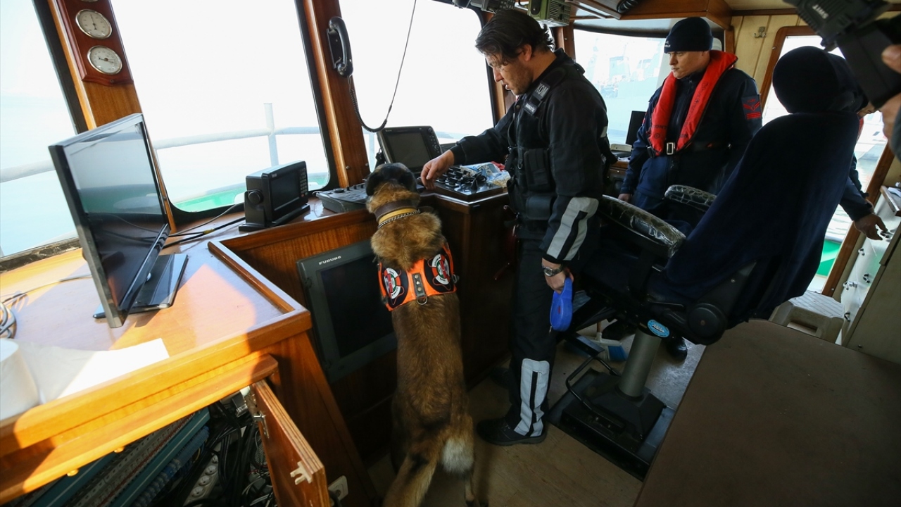 Sahil Güvenlik Komutanlığının keskin burunlu narkotik köpeği "Barut", aldığı eğitimler ve yeteneğiyle denizlerde yürütülen uyuşturucu operasyonlarında önemli görev üstleniyor.