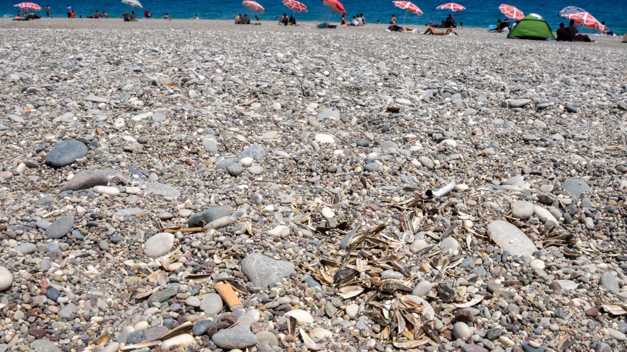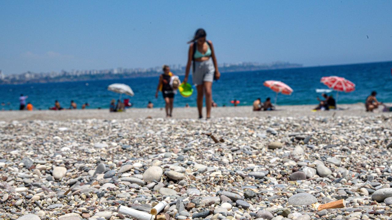 Kurban Bayramı'nı Antalya'da geçirenlerin uğrak yeri Konyaaltı Sahili'nde tatilcilerin plajda söndürüp, çakıl taşları arasına gizlediği izmaritler, kirliliğe neden oldu.