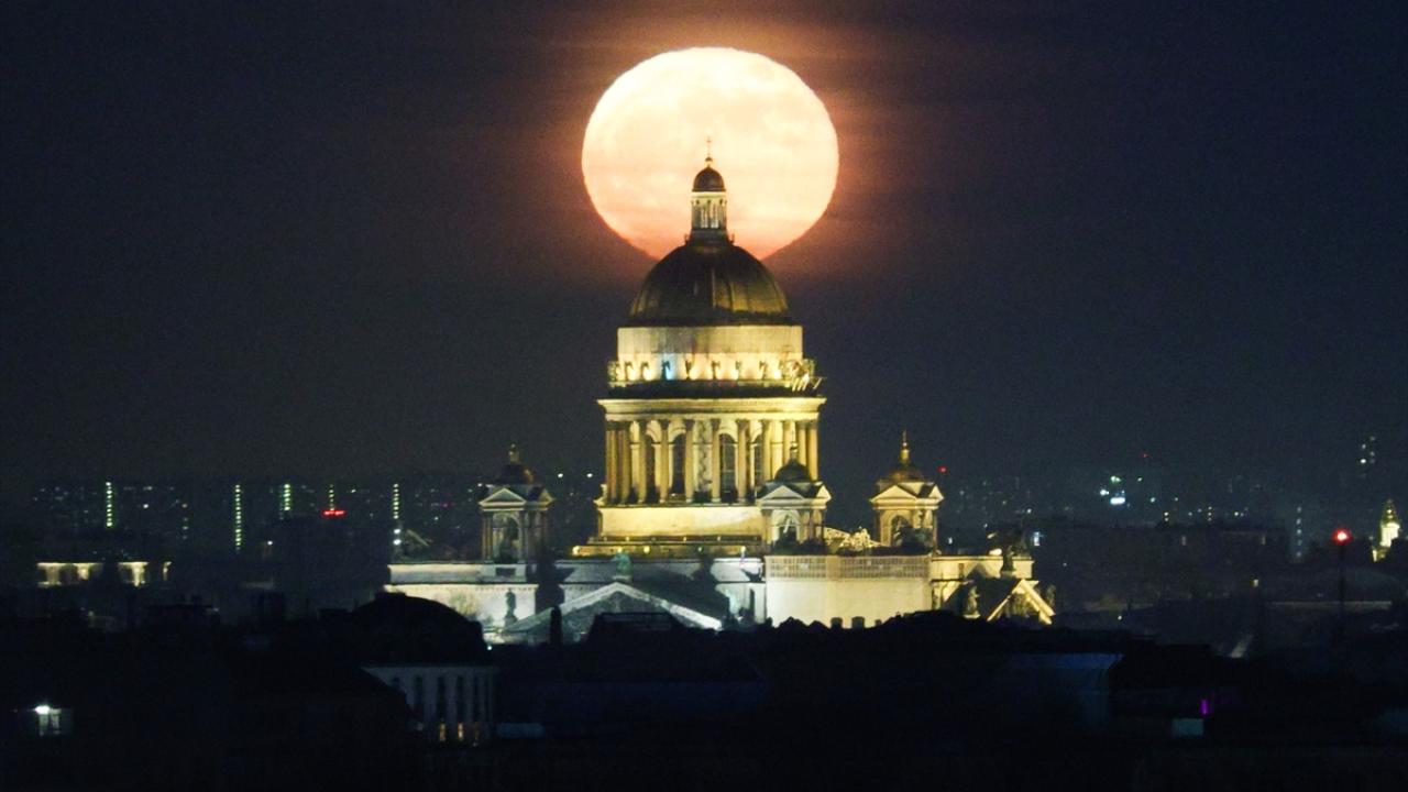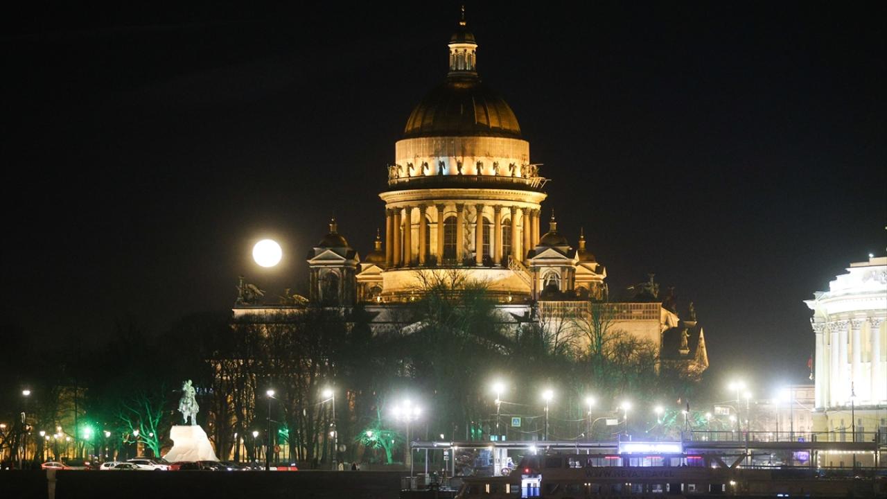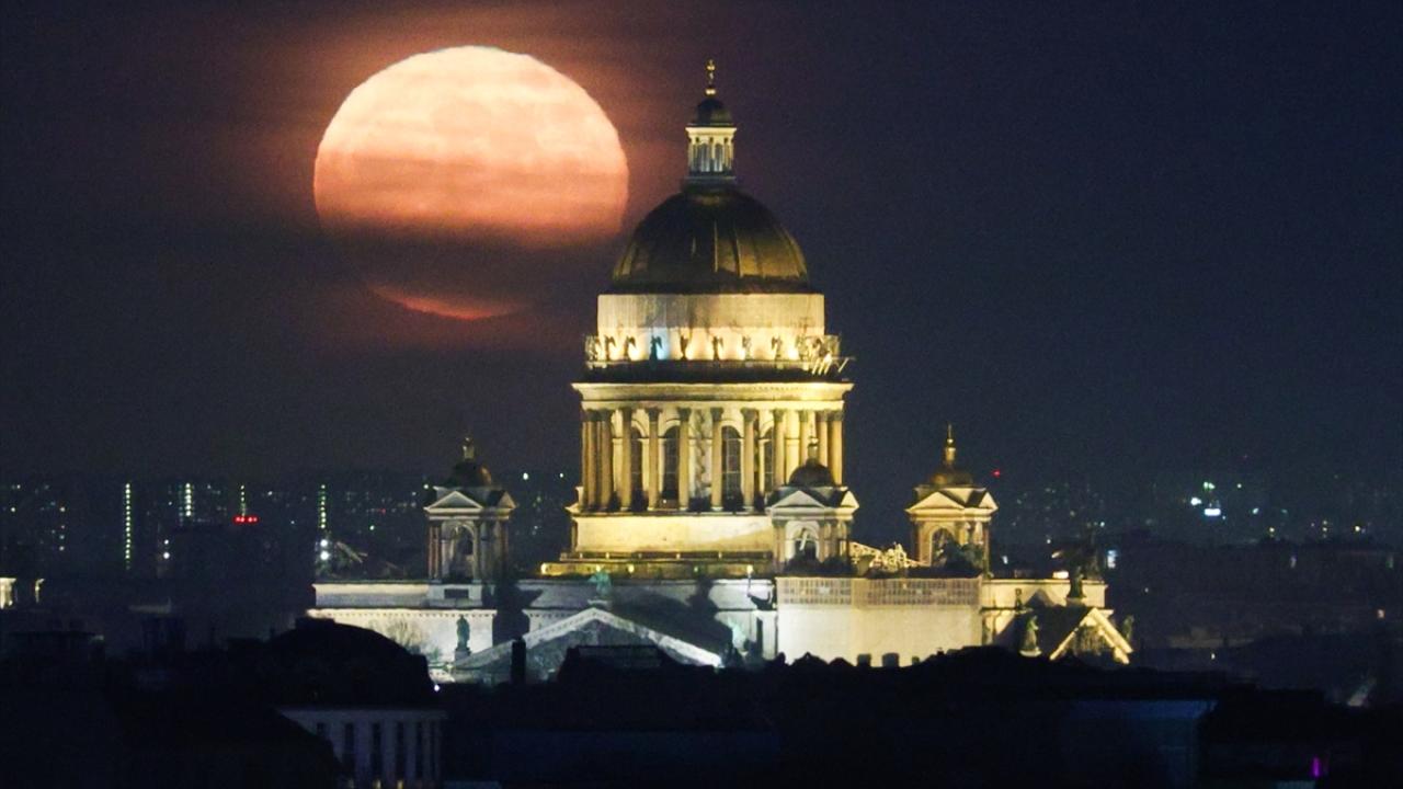 Rusya'nın St. Petersburg kentinde dolunay Aziz Isaac Katedrali ile beraber görüntülendi.