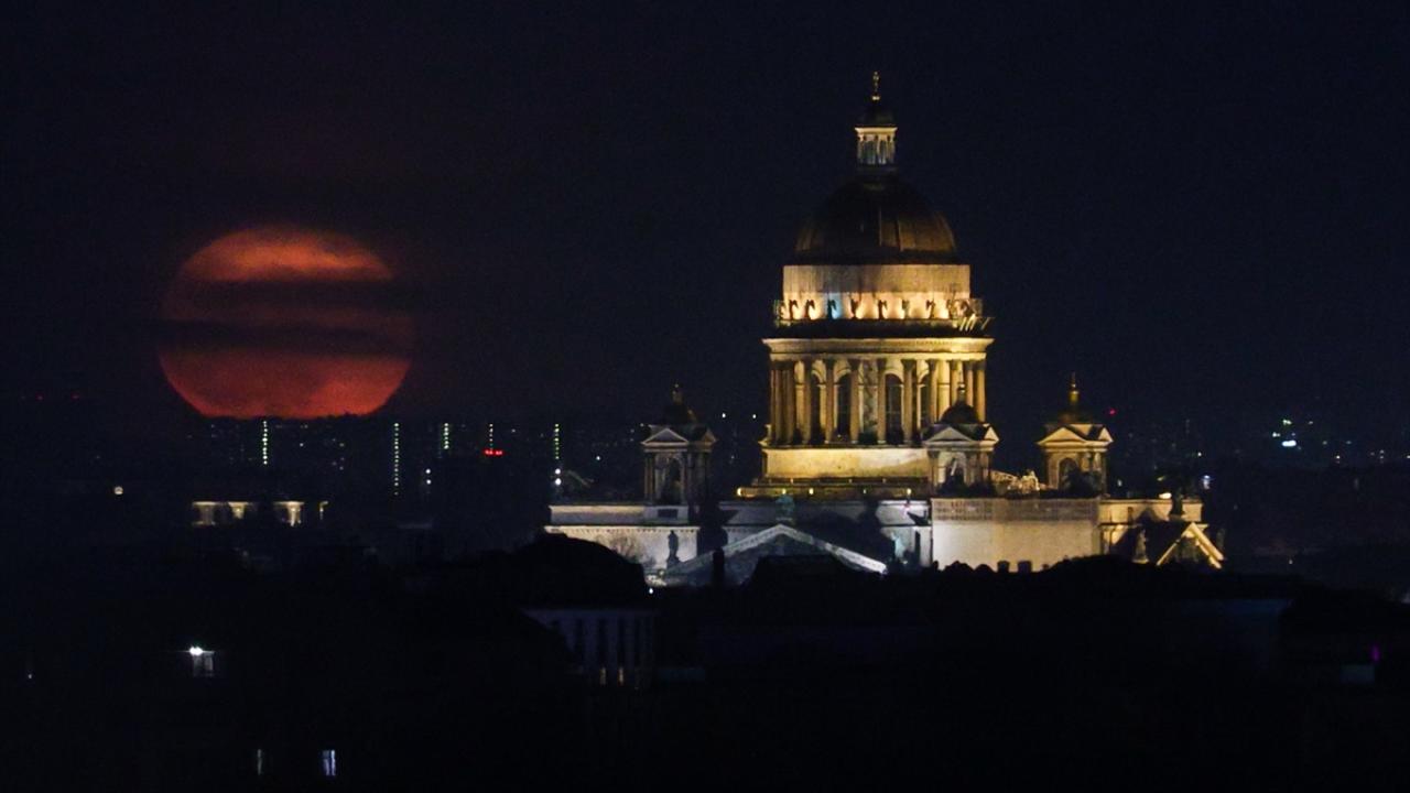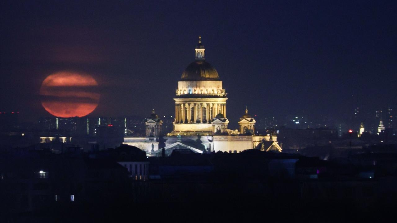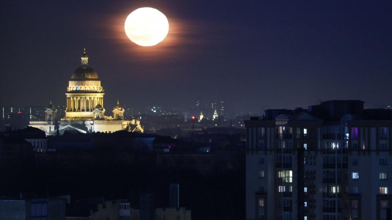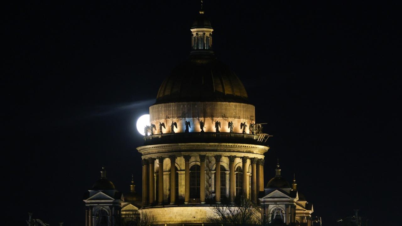 Rusya'nın St. Petersburg kentinde dolunay Aziz Isaac Katedrali ile beraber görüntülendi.