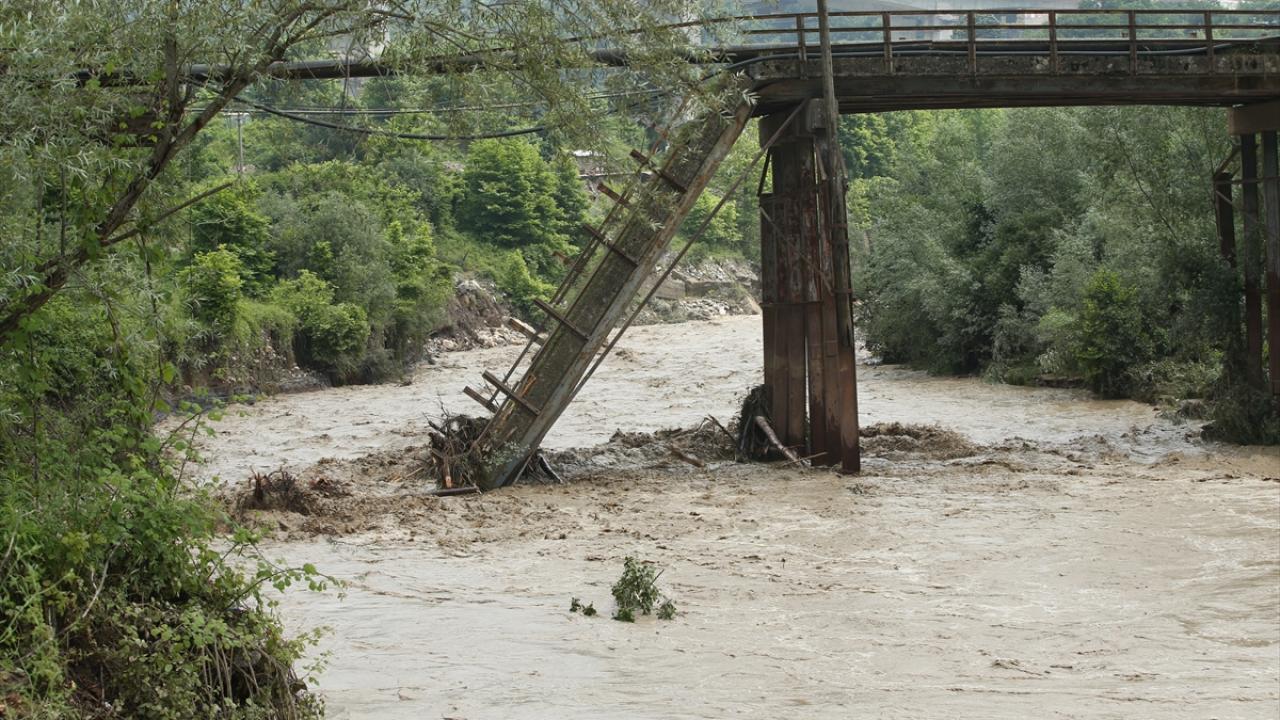 Taşkın nedeniyle Uludere Mahallesi`nde de köprü yıkıldı, yolda çökmeler meydana geldi.