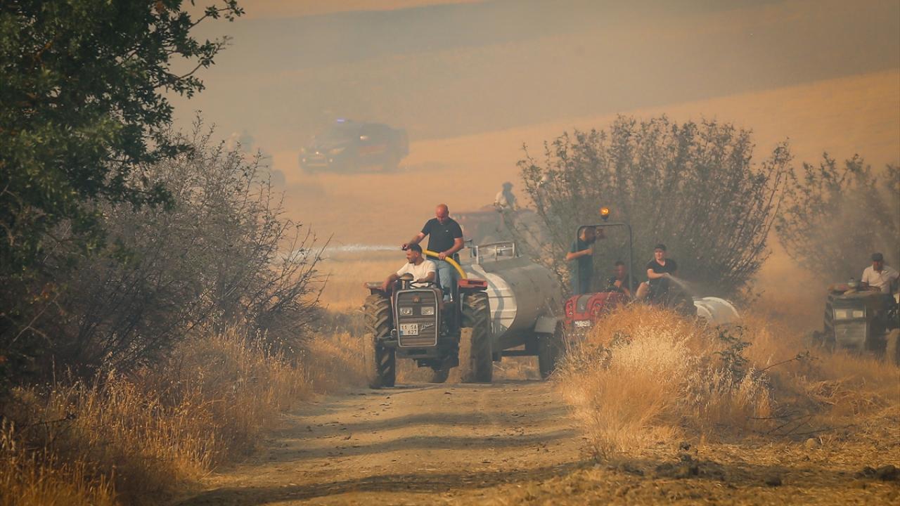 Ayrıca 100`ün üzerinde bölge sakini, traktörleriyle yangının ilerleyişini durdurmak ve ekiplere destek olmak için tarlalarını sürdü.