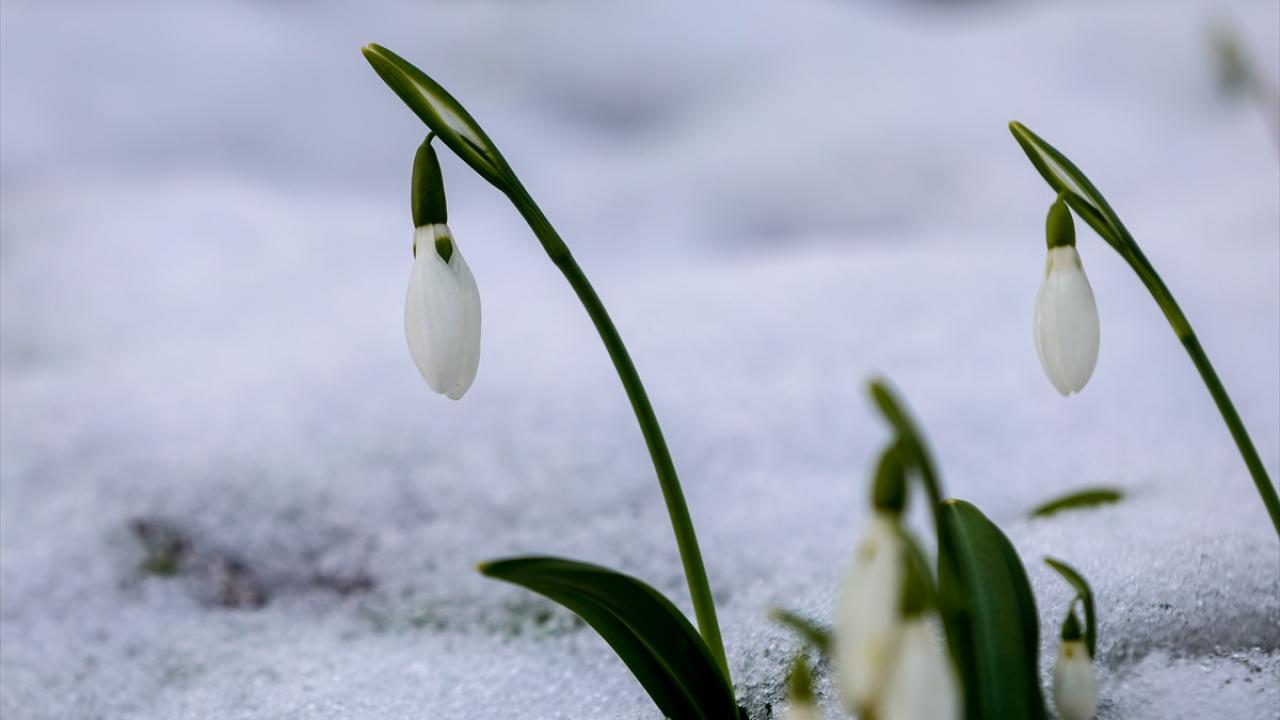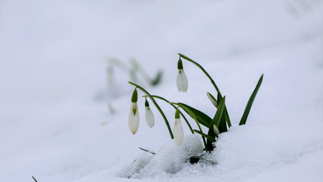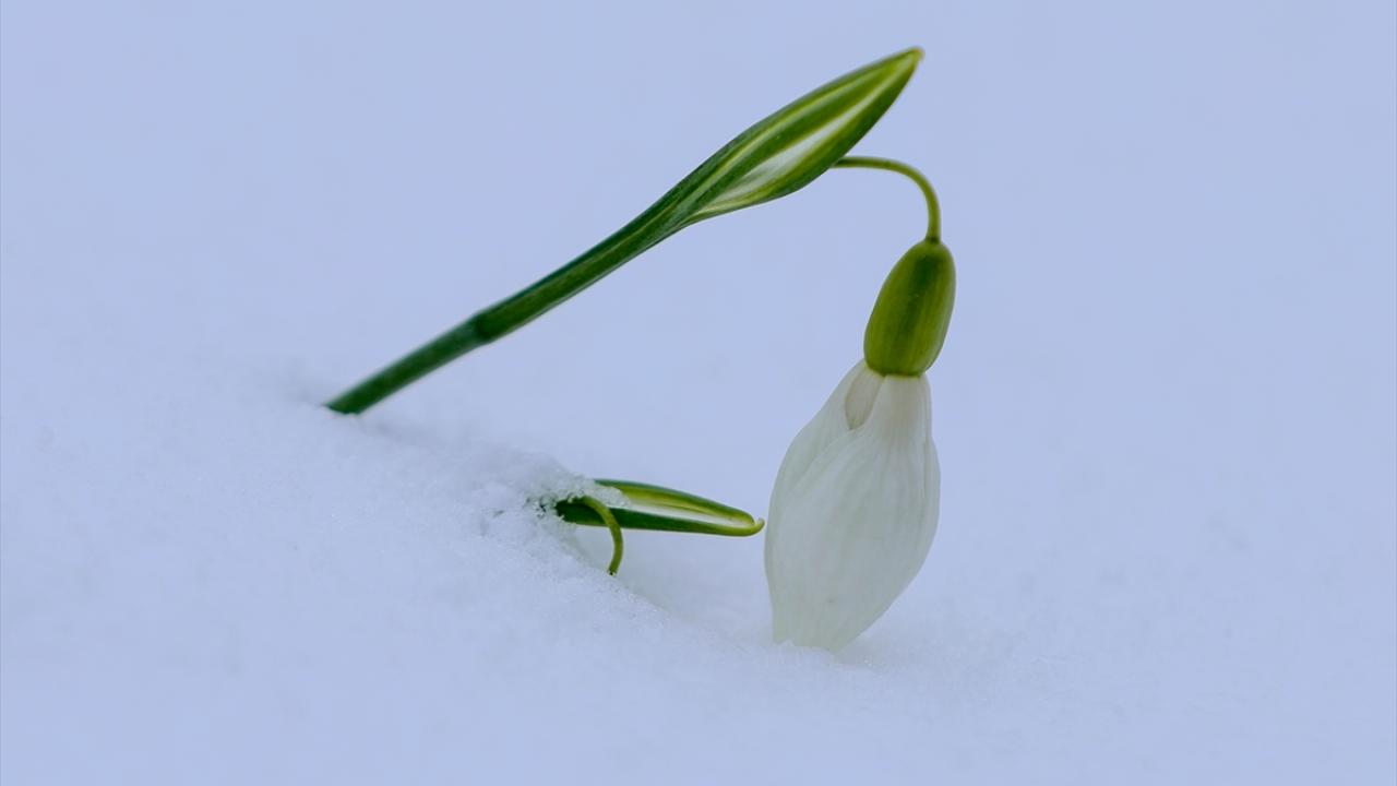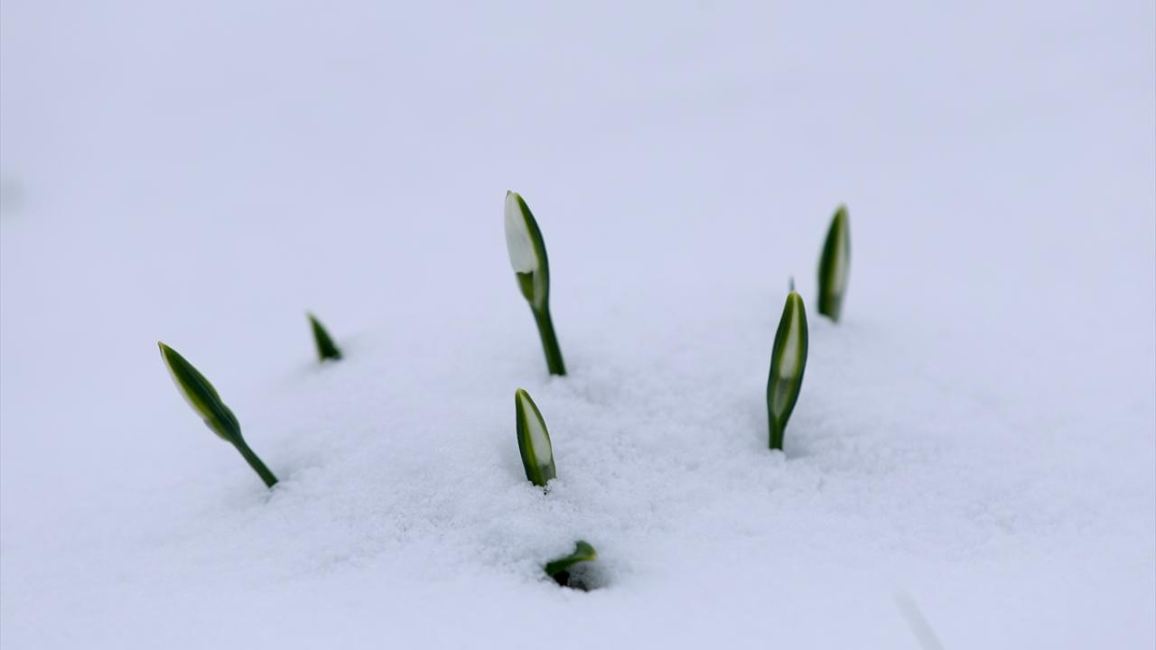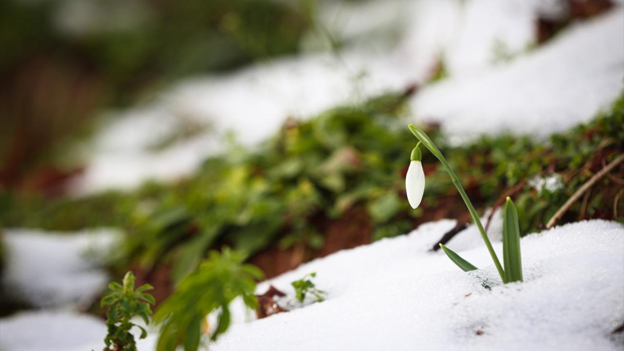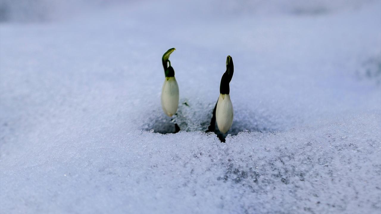 Sakarya'da beyaz örtüyle kaplanan Çam Dağı'nın eteklerini kardelenler süsledi