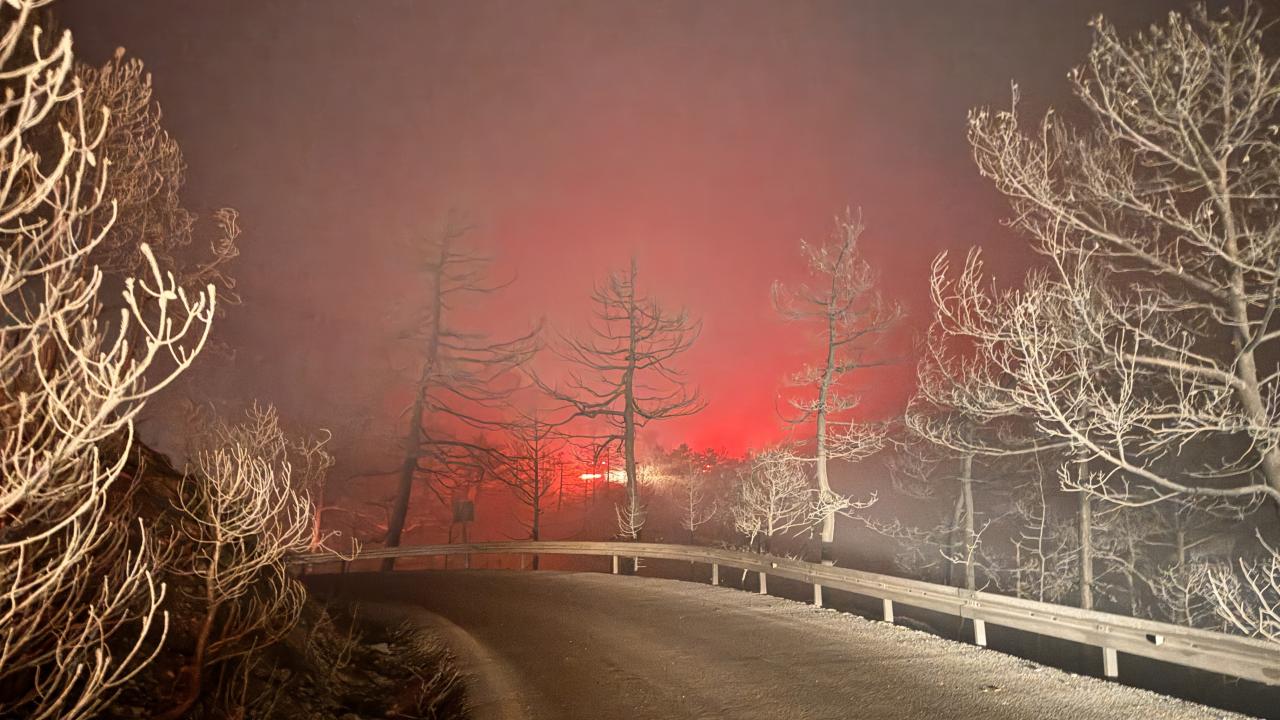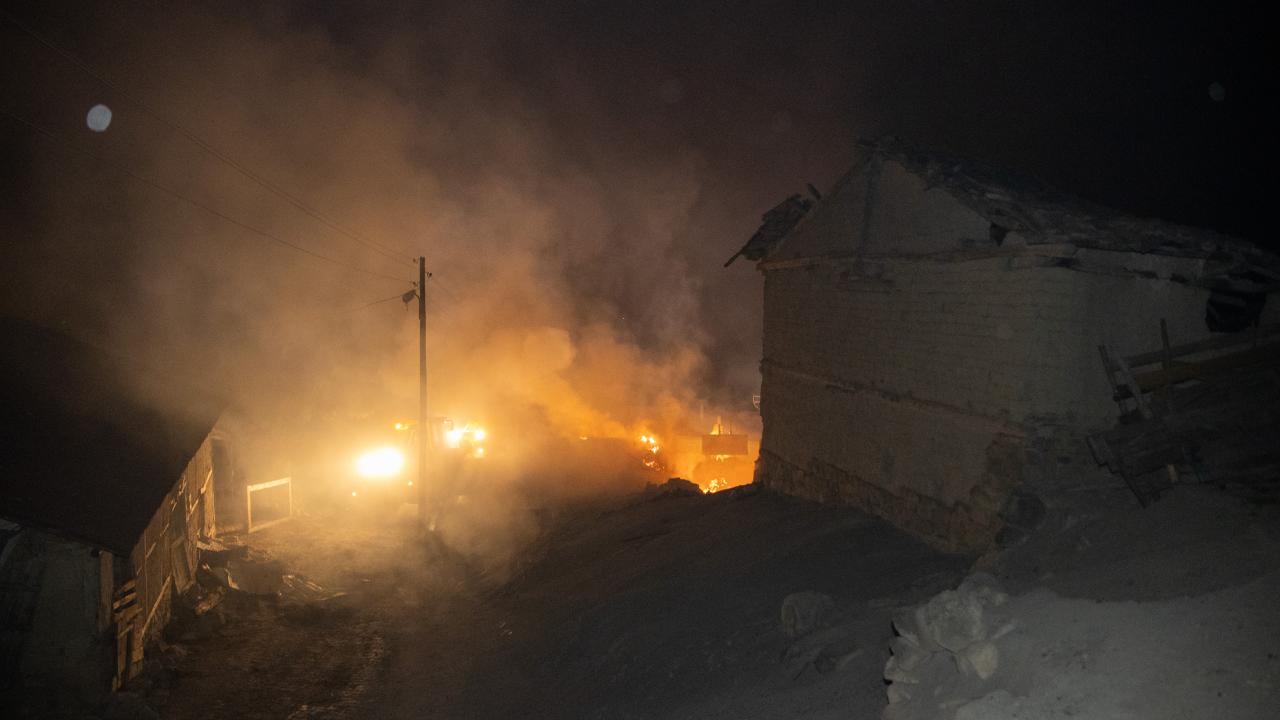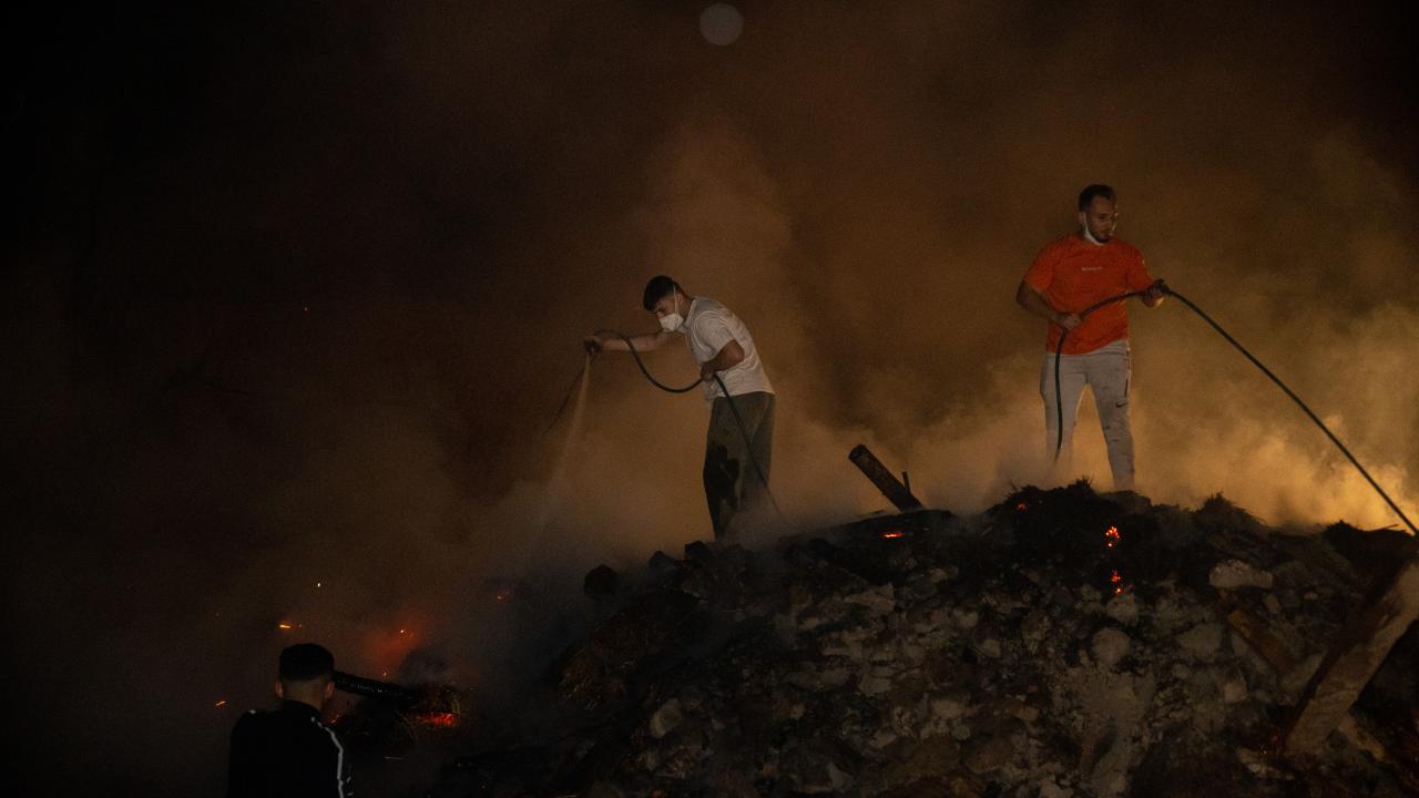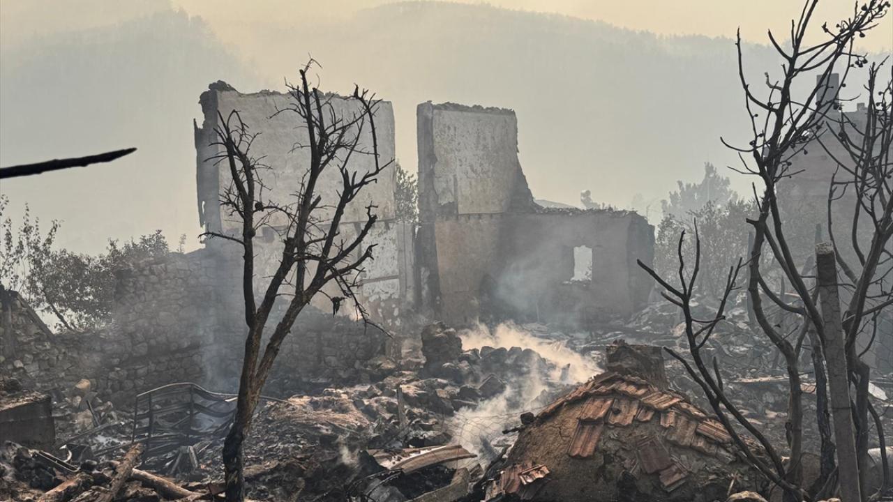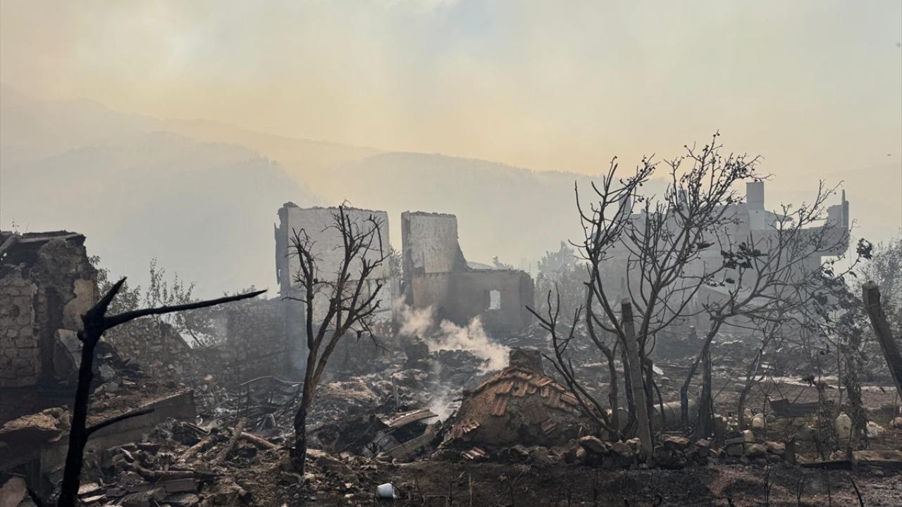 Yoğun dumanın hakim olduğu bölgede ekipler, söz konusu mahallelerde yanan ev ve yapılarda soğutma işlemi yapıyor.